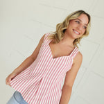 The Silas Striped Top features a flattering sweetheart neckline and a breezy sleeveless design, perfect for warm days. Its a-line fit offers comfortable movement while enhancing your silhouette. This versatile top pairs effortlessly with your favorite jeans or skirts, making it a supportive addition to your everyday wardrobe.