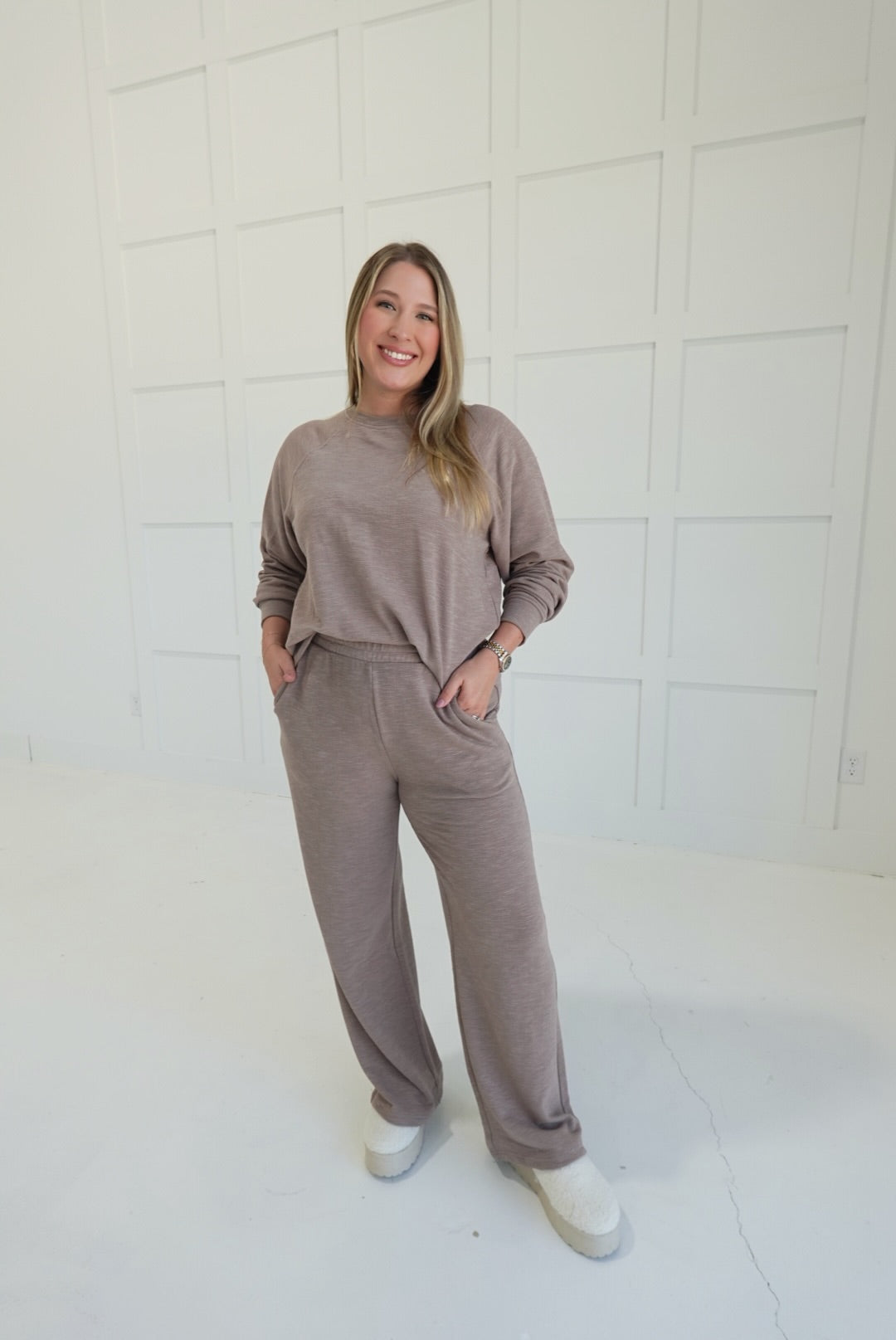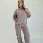 Experience ultimate comfort with the Slub Knit Lounger Set in Cocoa. This long sleeve top and pants duo features a soft, breathable slub knit fabric that gently moves with you. Perfect for relaxing at home or casual outings, the set offers a cozy fit without sacrificing style. Its versatile cocoa hue pairs easily with your wardrobe, making it an ideal choice for everyday wear. Designed to keep you comfortable and confident, this lounger set supports your need for effortless, stylish comfort.