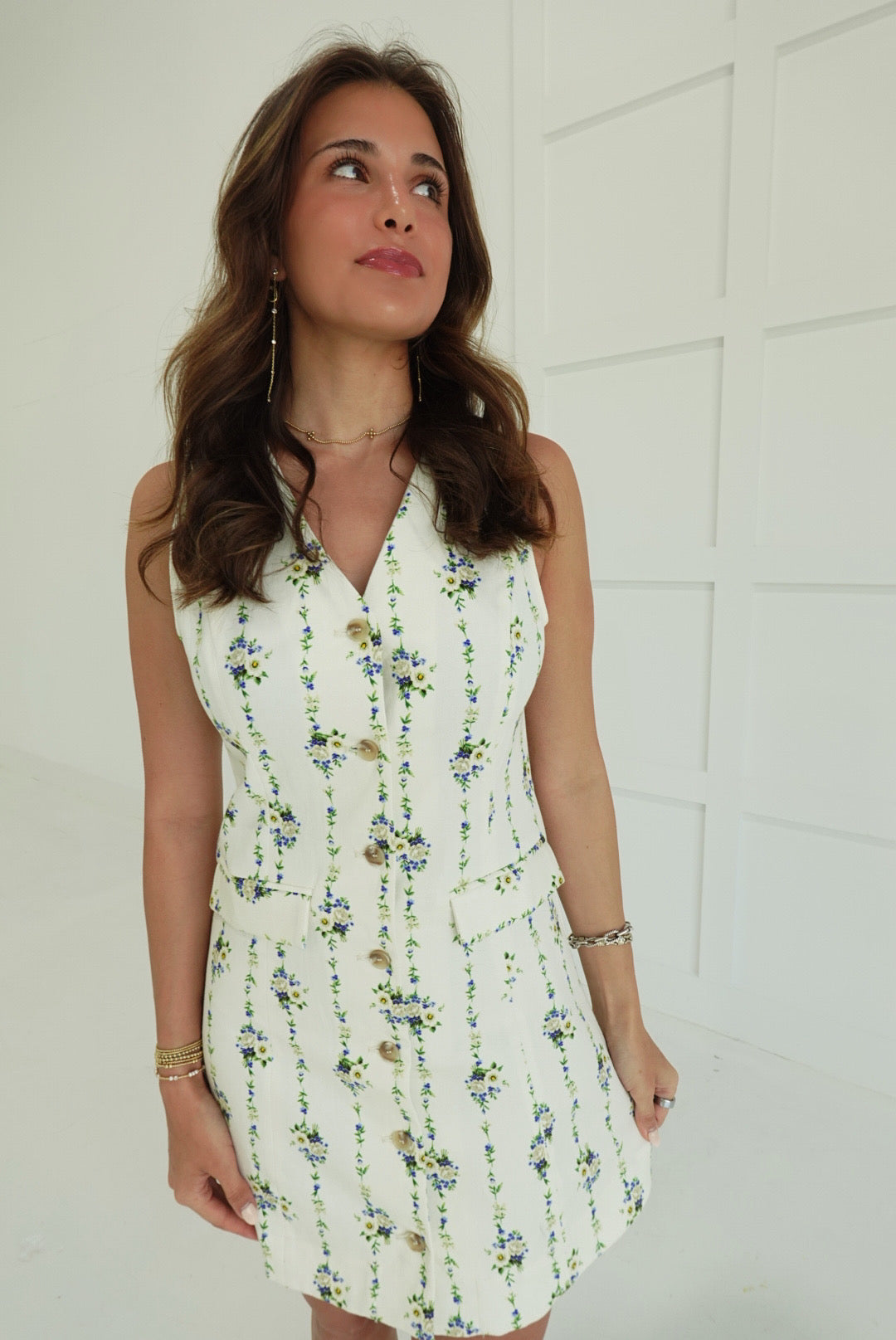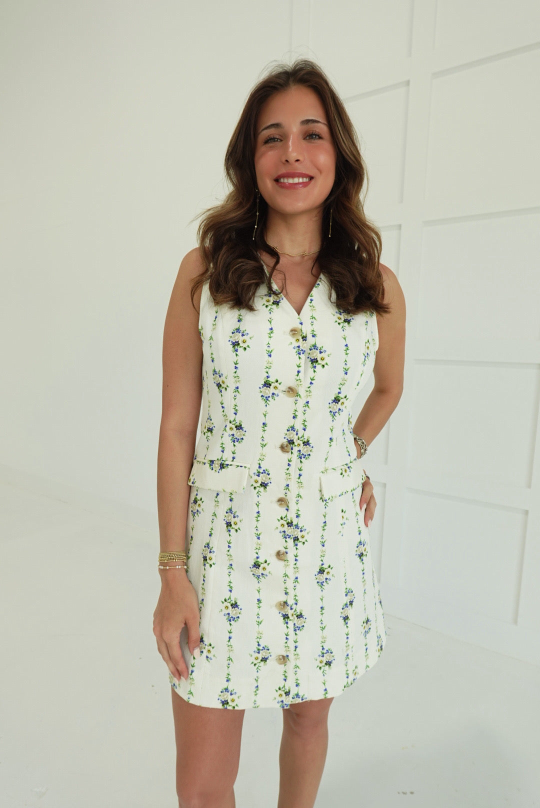 The Small Gestures Mini Dress brings effortless style to your warm-weather wardrobe. This lightweight woven piece features a charming floral print and sleeveless silhouette, perfect for layering or wearing solo. The front button closure and lined construction ensure comfort and durability, while decorative flap pockets add practical detail. Non-sheer fabric provides confidence and coverage. An ideal choice for casual outings, weekend getaways, or dressed-up occasions.