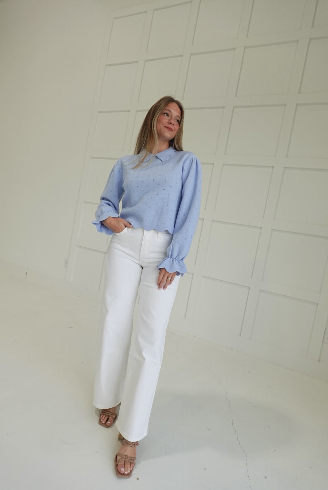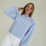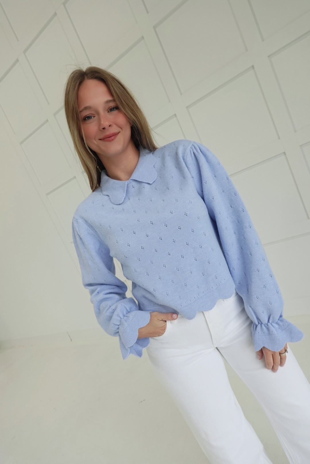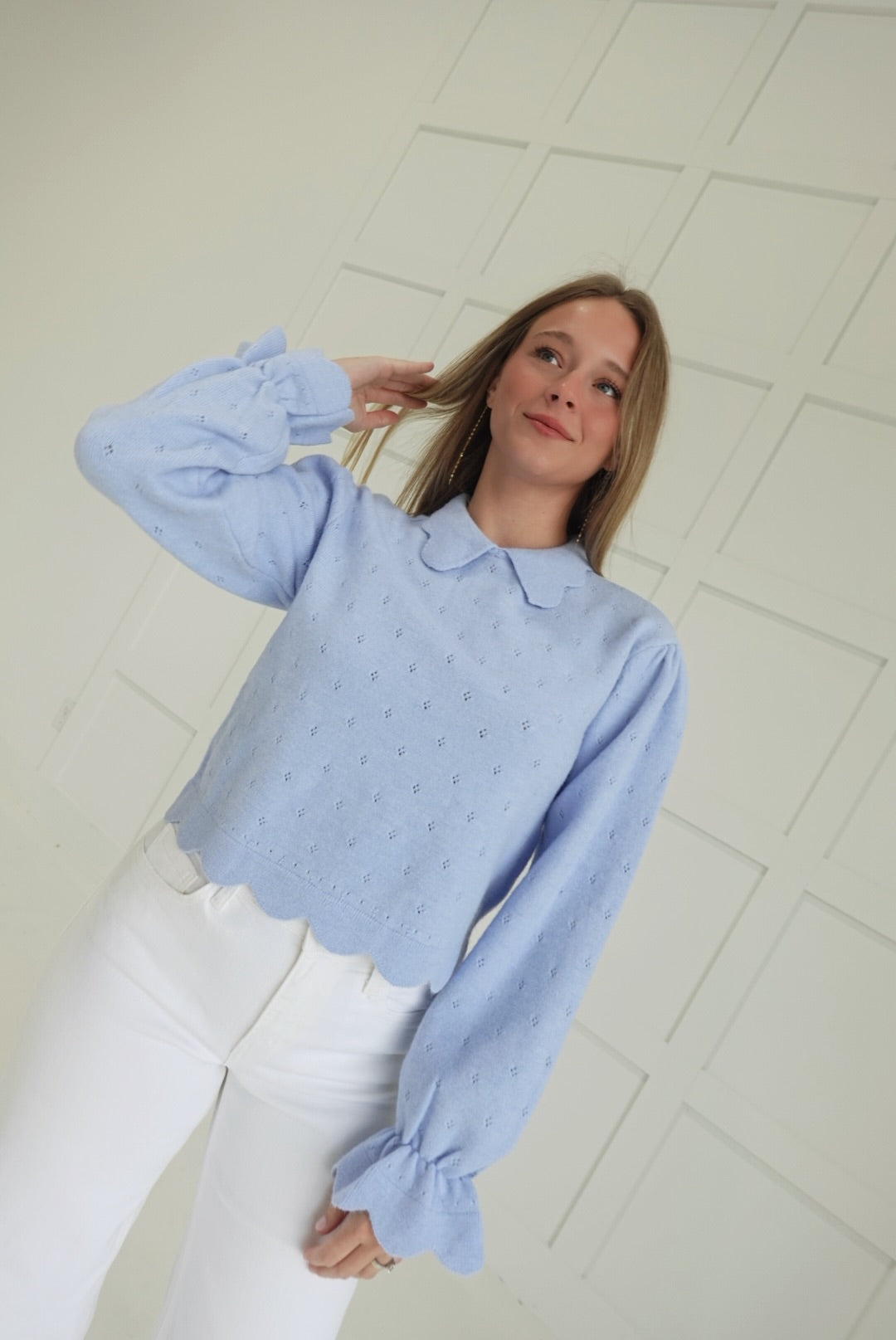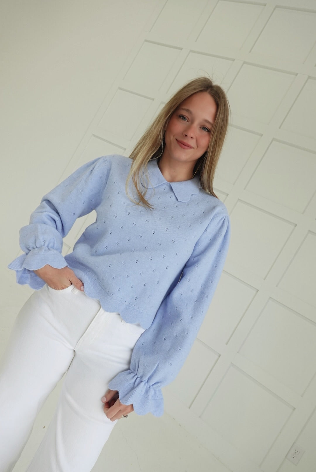 Embrace classic charm with the So Posh Pointelle Sweater, featuring a delicate Peter Pan collar and scalloped edges. This cozy sweater top blends timeless style with soft, breathable fabric to keep you comfortable and effortlessly polished all day. Ideal for layering or wearing on its own, it adds a subtle touch of elegance to any outfit while supporting your everyday confidence.