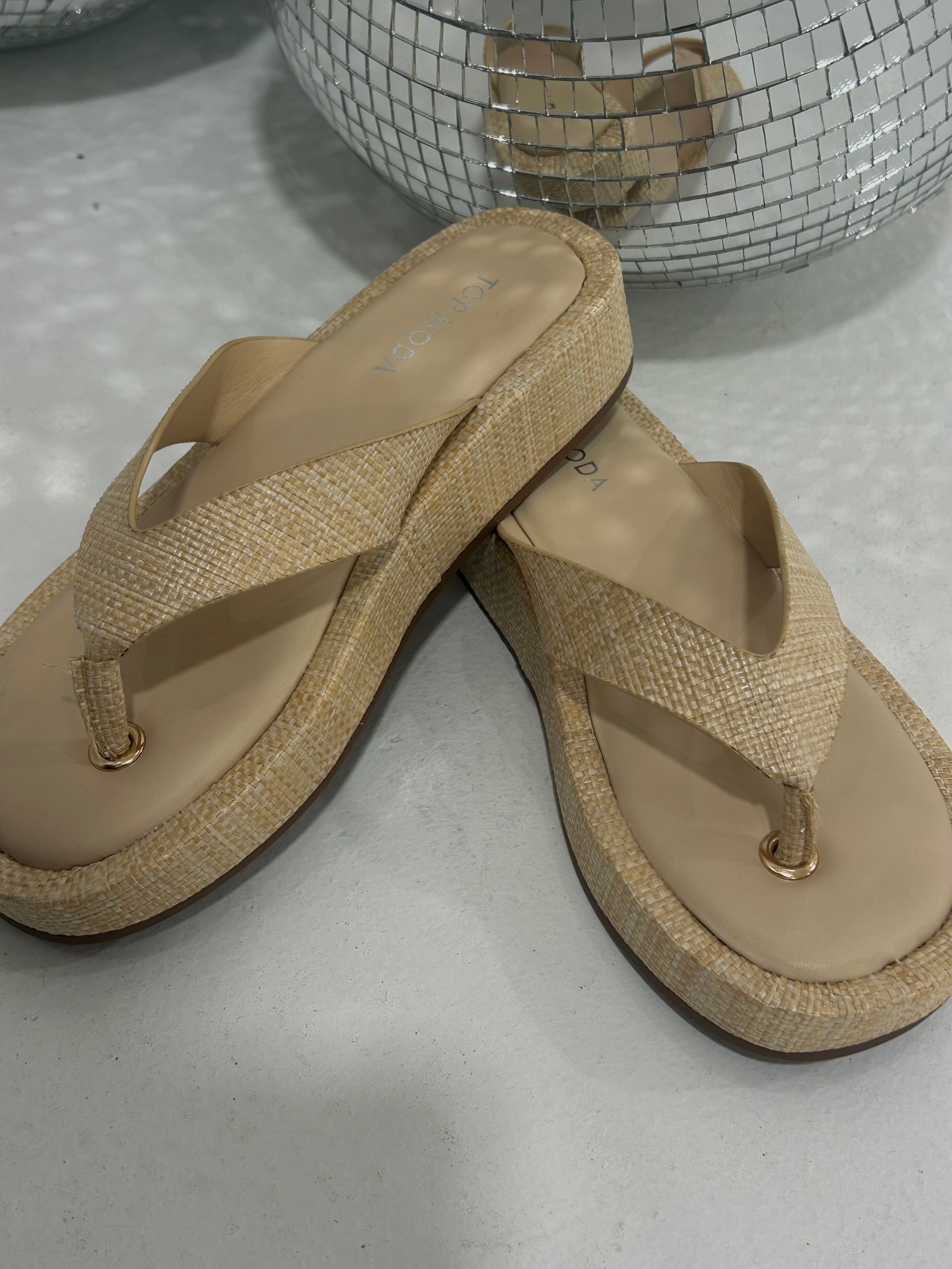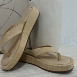 Strut into summer with the Soleil Sandal—a bold raffia platform flip-flop that refuses to play it safe. Woven raffia uppers deliver texture and movement with every step, while the elevated platform sole commands attention and adds serious height. Lightweight yet sturdy, this daring silhouette pairs effortlessly with everything from linen dresses to tailored shorts. Perfect for those ready to make a statement, whether you're heading to the beach or the city streets.