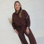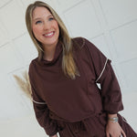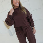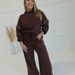 - Lounge Set - Wide Leg Pants + Mock Neck Sweatshirt With Contrast Piping Detail