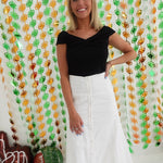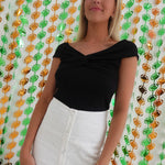 Get ready to elevate your weekend look with our Southern Saturday Top. Featuring a trendy, off the shoulder design and a playful twist front, this knit top is perfect for any casual occasion. Say yes to comfort and style with this must-have addition to your wardrobe!