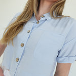Spaces Crop Top Bold, unapologetic style meets everyday versatility. This collared button-down crop top features structured cuff sleeves and a sharp silhouette that commands attention. Perfect for layering over basics or wearing solo, it's the piece that transforms a simple outfit into a statement. Tailored for confidence, designed for those who refuse to blend in.