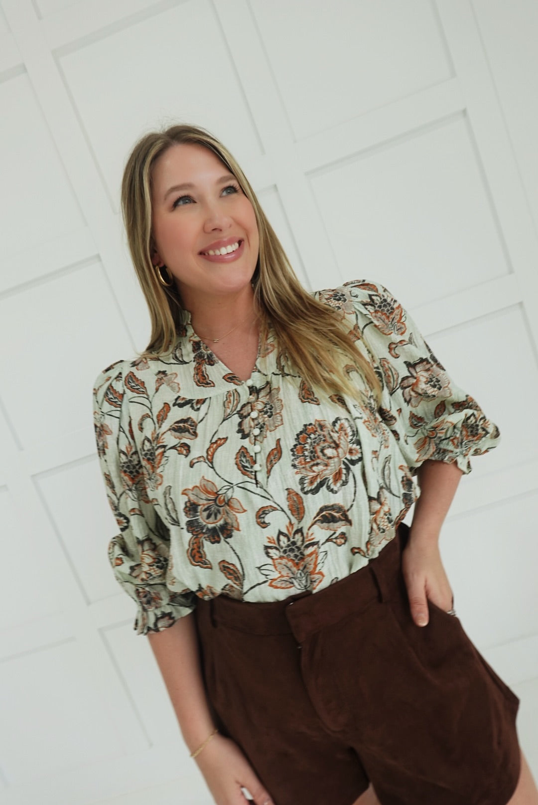 Embrace timeless elegance with the Spirits Grow Blouse, featuring delicate vintage floral patterns that bring a touch of classic charm to your wardrobe. Thoughtfully designed with covered buttons and a softly ruffled collar, this blouse offers both comfort and refined style. Perfect for layering or wearing on its own, it supports your desire to feel confident and graceful every day.