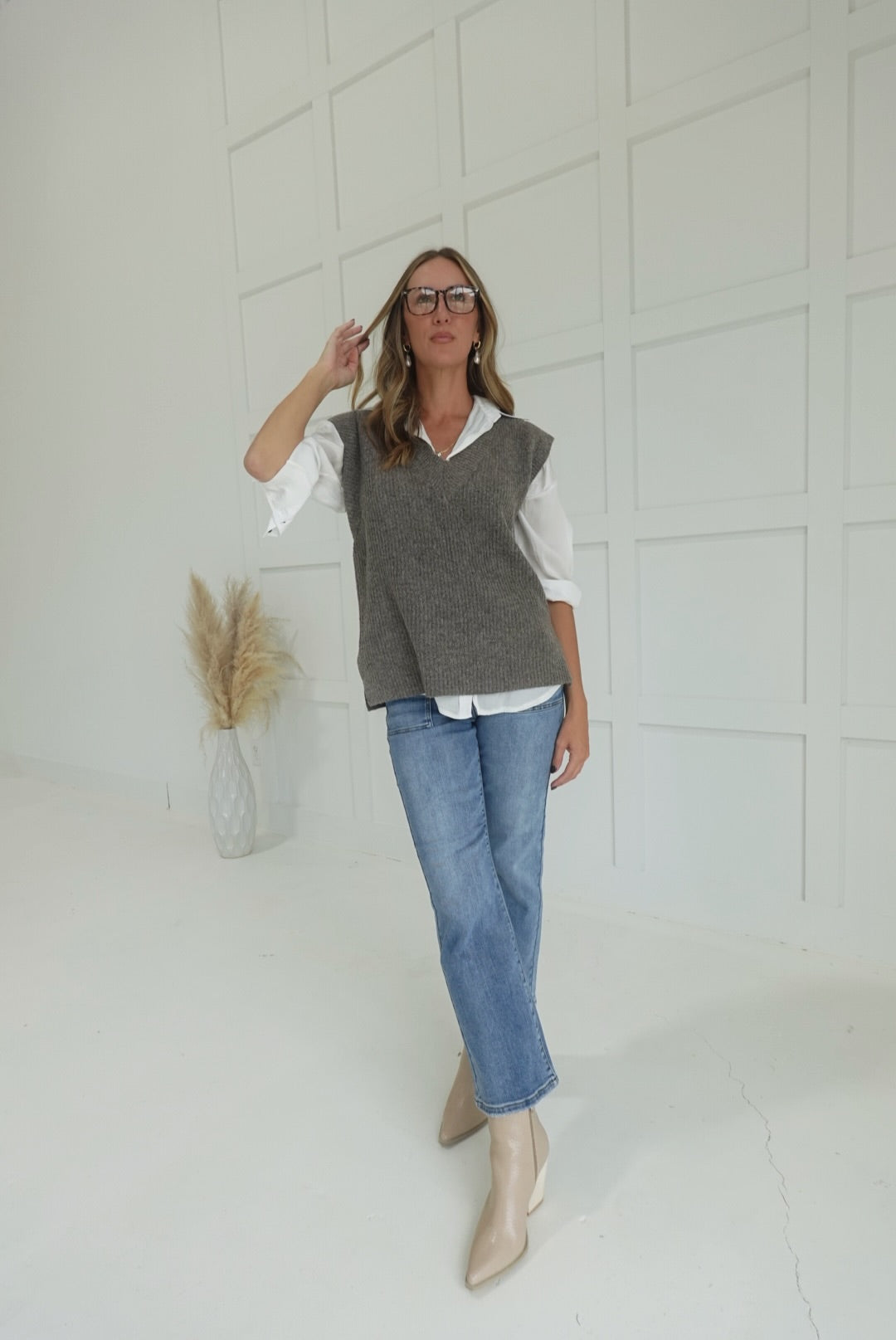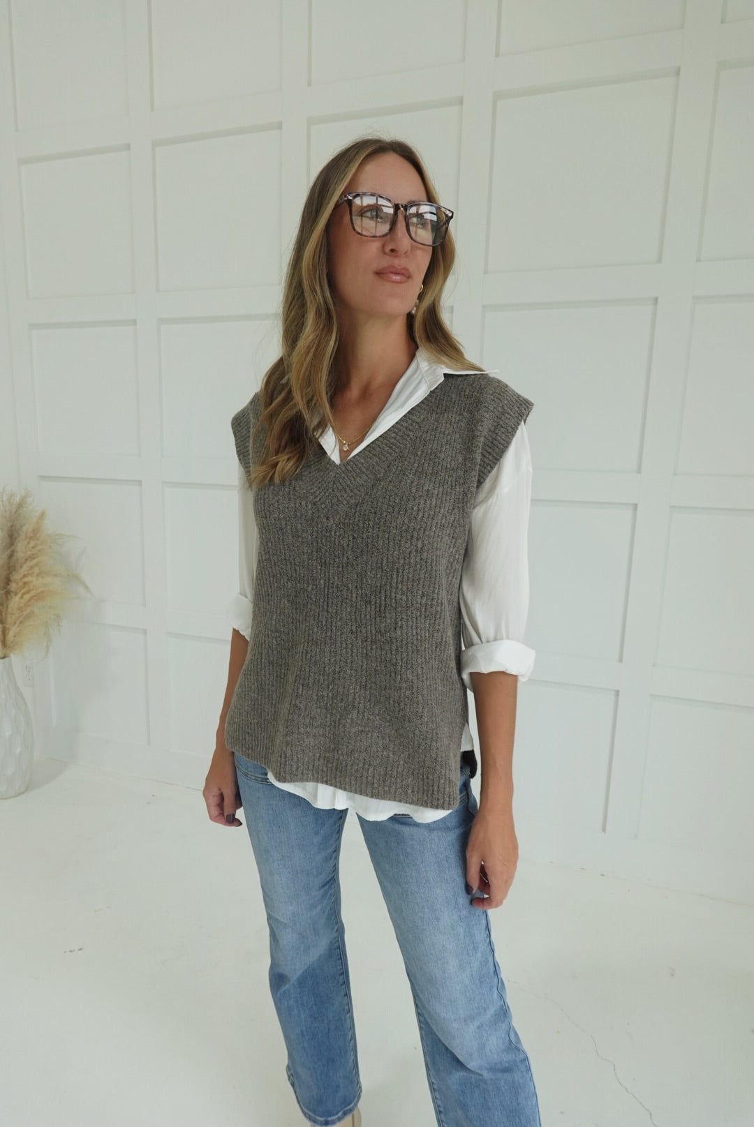 Embrace comfort and confidence with the Stand My Ground Sweater. This oversized V-neck sweater vest features side slits for ease of movement and a relaxed fit that layers effortlessly. Perfect for adding warmth without bulk, it supports your style with a cozy, versatile design that keeps you feeling grounded all day.