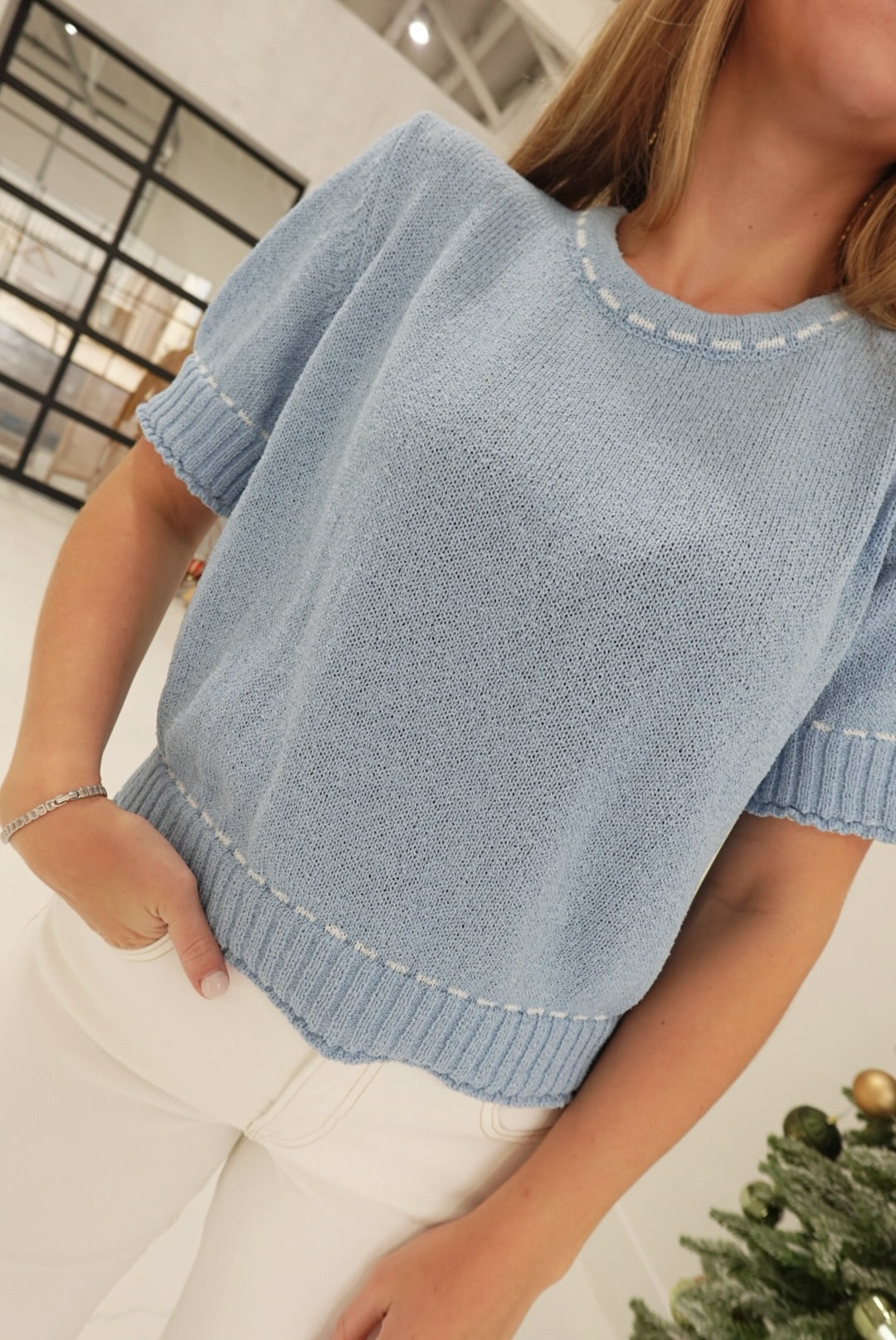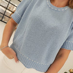 Introducing the Starla Sweater—a versatile layering piece that brings effortless style to your everyday wardrobe. This short sleeve round neck sweater features eye-catching contrasting color stitching that adds a thoughtful design detail. Perfect for transitional seasons or layering year-round, the Starla works beautifully over tees or paired with your favorite bottoms. The classic silhouette and quality construction make it a reliable go-to you'll reach for again and again.