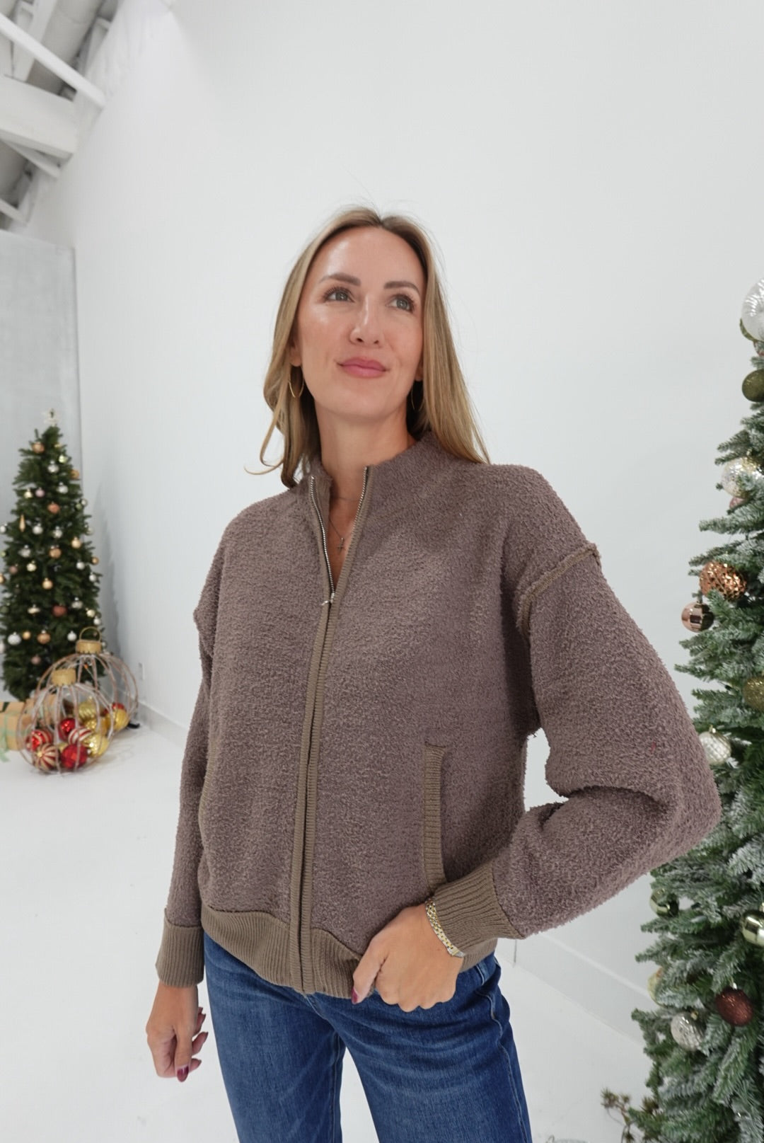 - Fluffy Zip-Up Cardigan