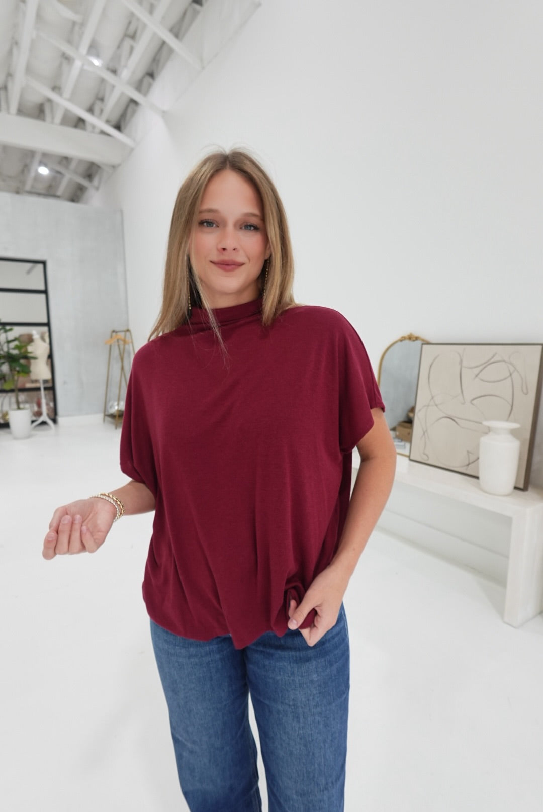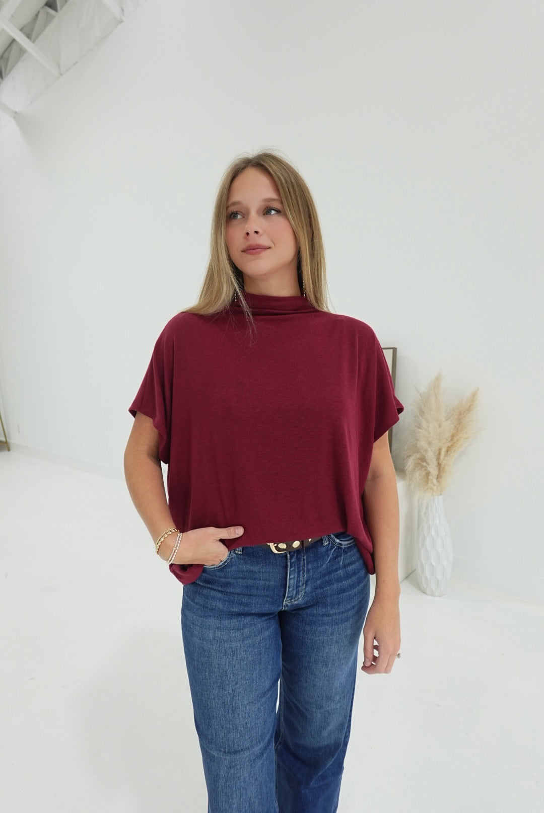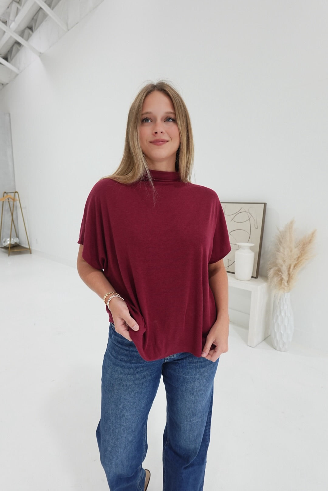 This lightweight Staycation Top offers a comfortable, breathable fit with its soft knit fabric. Featuring a stylish mock neck and short sleeves, it provides modest coverage without feeling heavy or layered. Its non-sheer design ensures you can wear it confidently throughout your day, whether relaxing at home or out and about. Perfect for easy, casual styling while staying effortlessly put together.