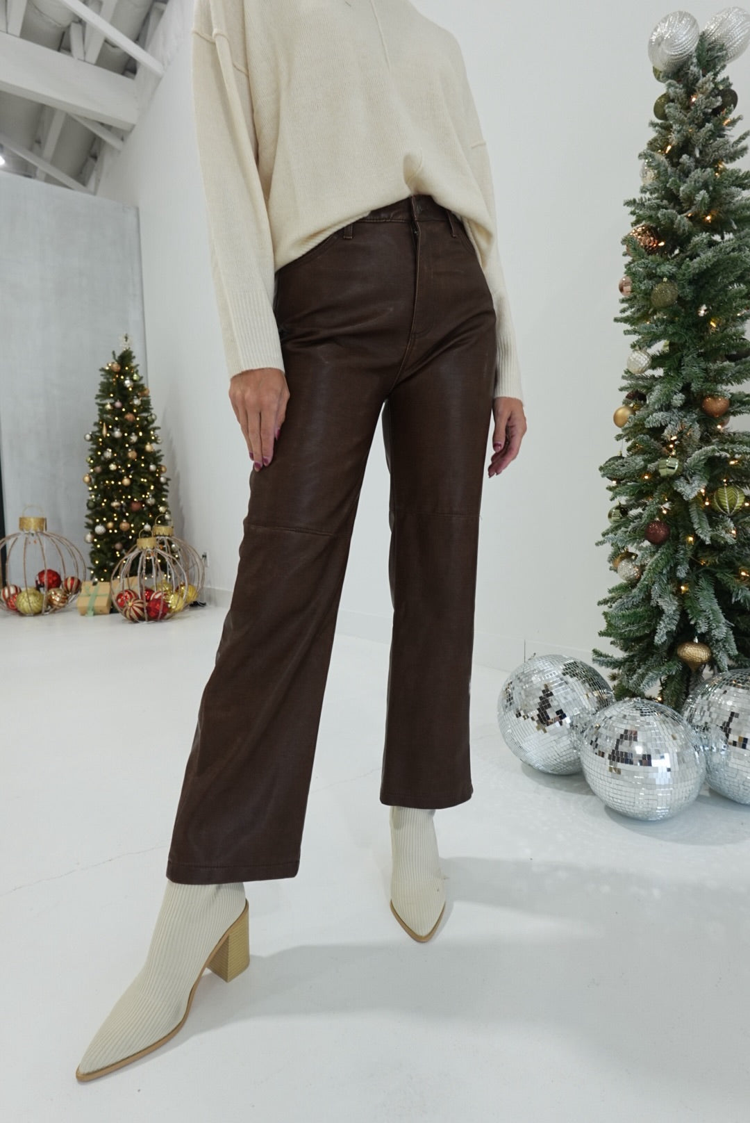 Elevate your wardrobe with the Step To The Side Pants. Crafted from soft faux leather, these pants offer a sleek, modern look while providing comfort and durability. Their flattering fit and versatile color make them perfect for both casual outings and dressier occasions. Step confidently into style with pants designed to move with you and complement your unique fashion sense.