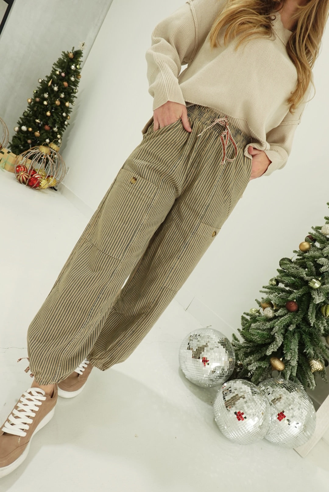 Stray Away from the ordinary in these vintage-washed stripe pants that refuse to play it safe. The elastic waist delivers comfort without compromise, while bold stripes make a statement that's impossible to ignore. Perfect for those who dress with attitude and aren't afraid to stand out. Effortless style meets rebellious spirit in every wear.