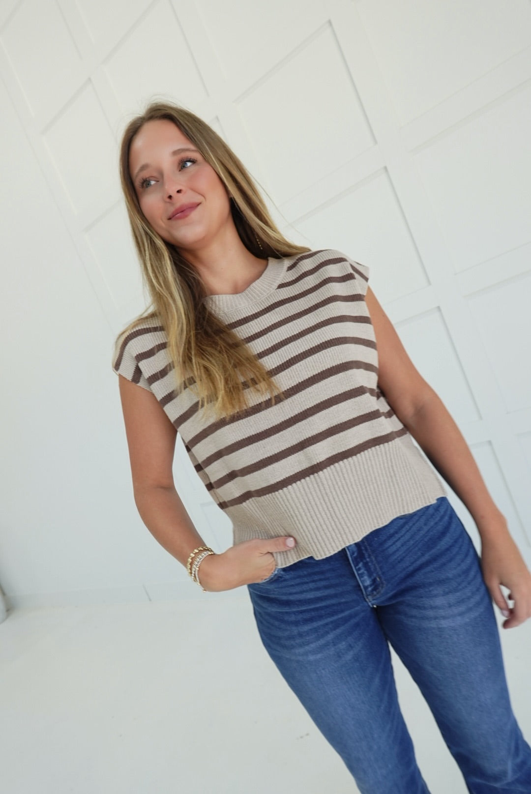 The Strickland Striped Sweater features a comfortable cap sleeve design combined with classic stripes, making it an easy layering piece for any wardrobe. Its soft knit fabric offers gentle warmth without bulk, while the cap sleeves provide a flattering, versatile silhouette that suits both casual and dressier occasions. Perfect for transitioning between seasons, this sweater keeps you cozy and stylish throughout your day.