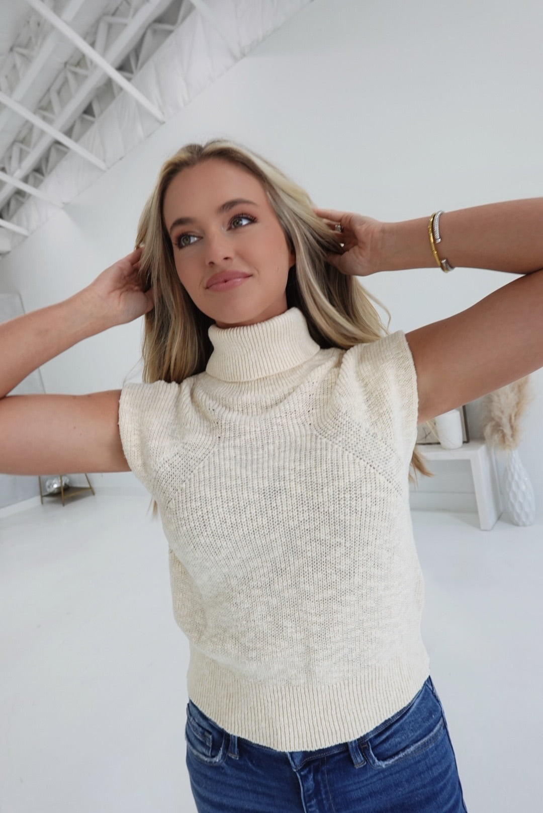 - Sleeveless, turtleneck top