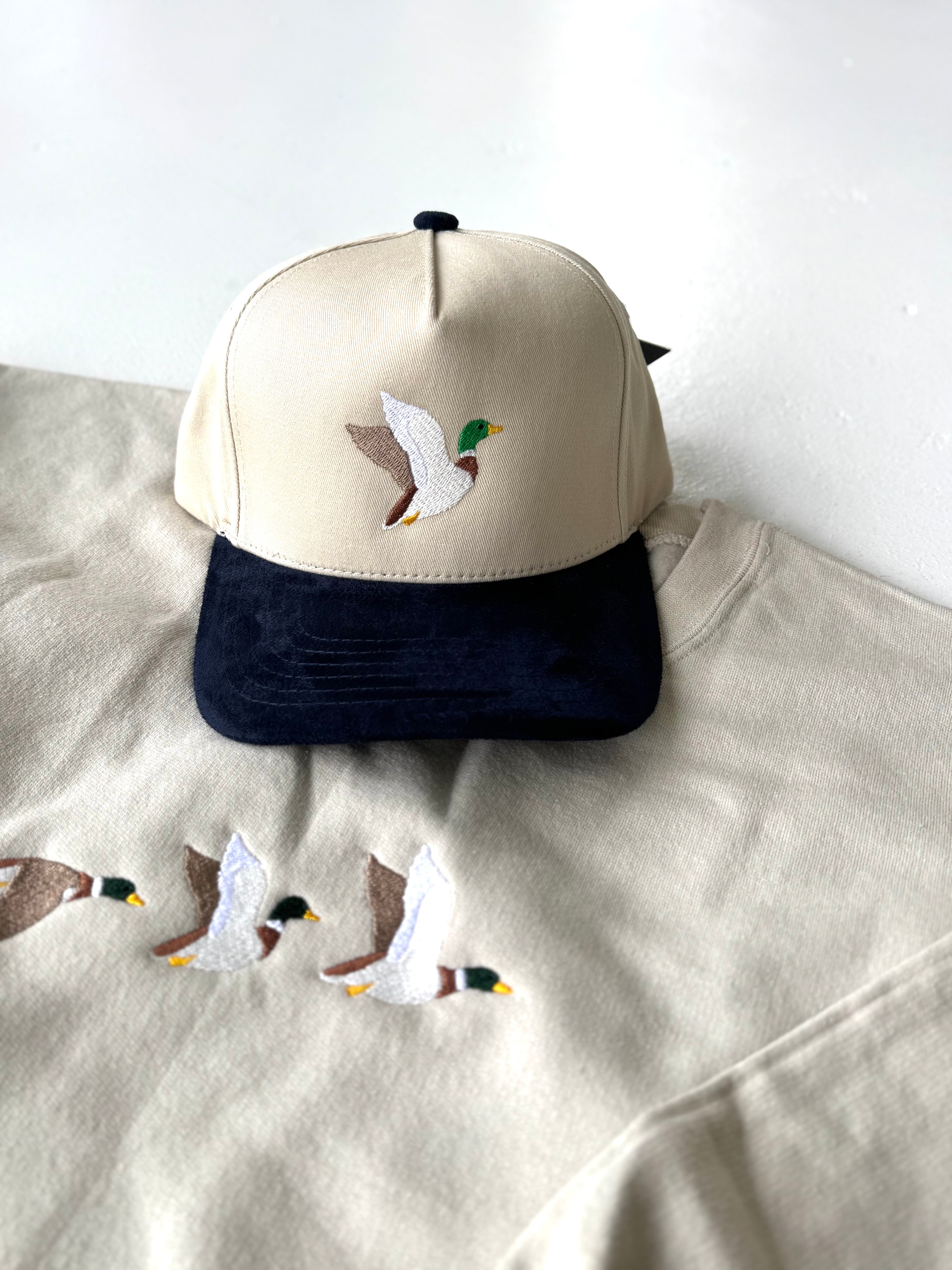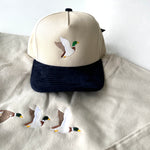 Elevate your everyday style with this striking Flying Mallard Embroidered Suede Trucker Hat. Crafted from premium suede, this classic trucker silhouette features a detailed embroidered mallard design that brings natural beauty to your wardrobe. The structured six-panel crown and breathable mesh back panels provide comfort and ventilation for all-day wear. Perfect for outdoor enthusiasts, nature lovers, or anyone seeking a distinctive accessory that makes a statement. Whether you're heading to the farm, hitting the trails, or simply want to showcase your appreciation for wildlife, this hat delivers both style and substance.