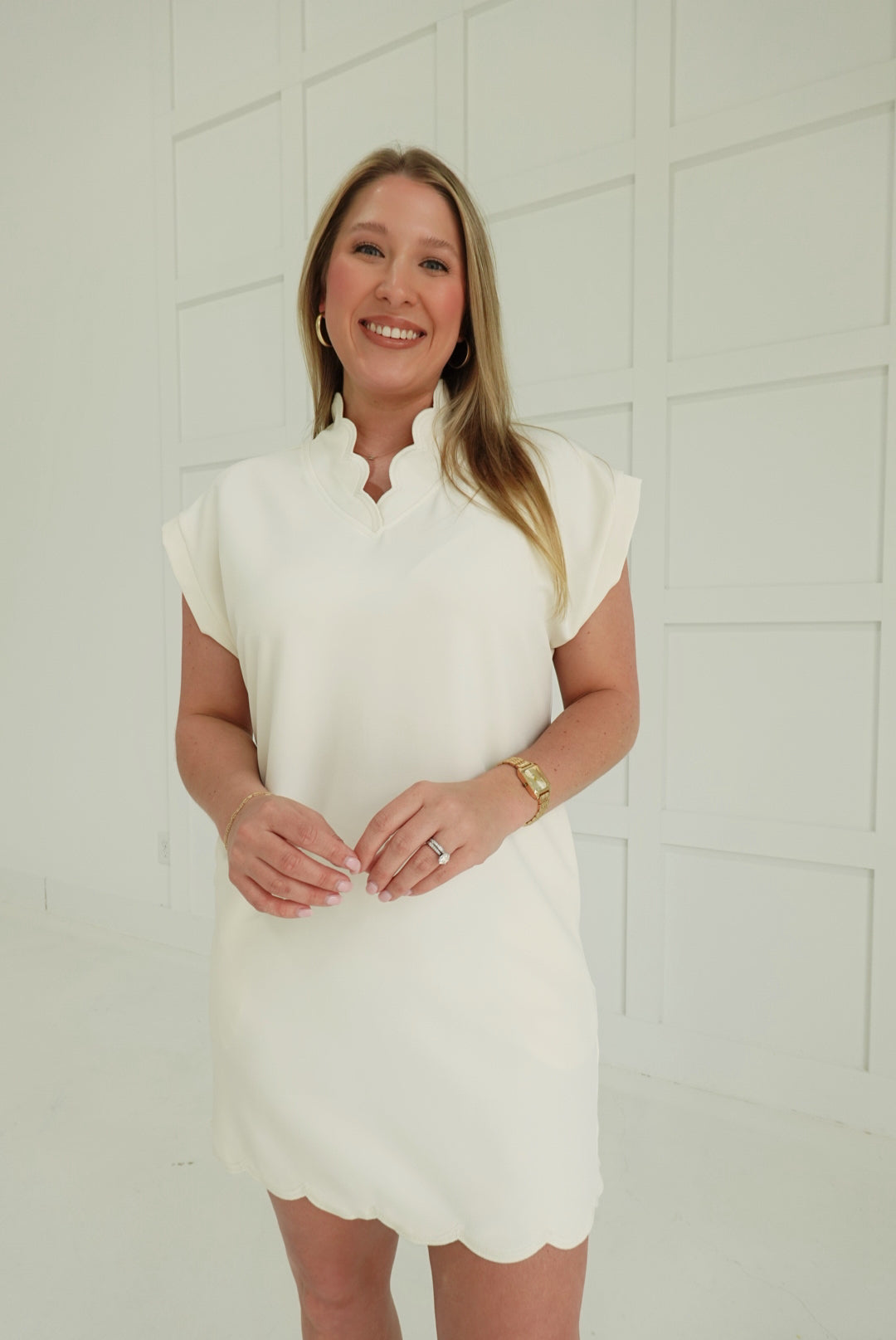 - Scallop V Neck Mini Dress