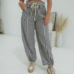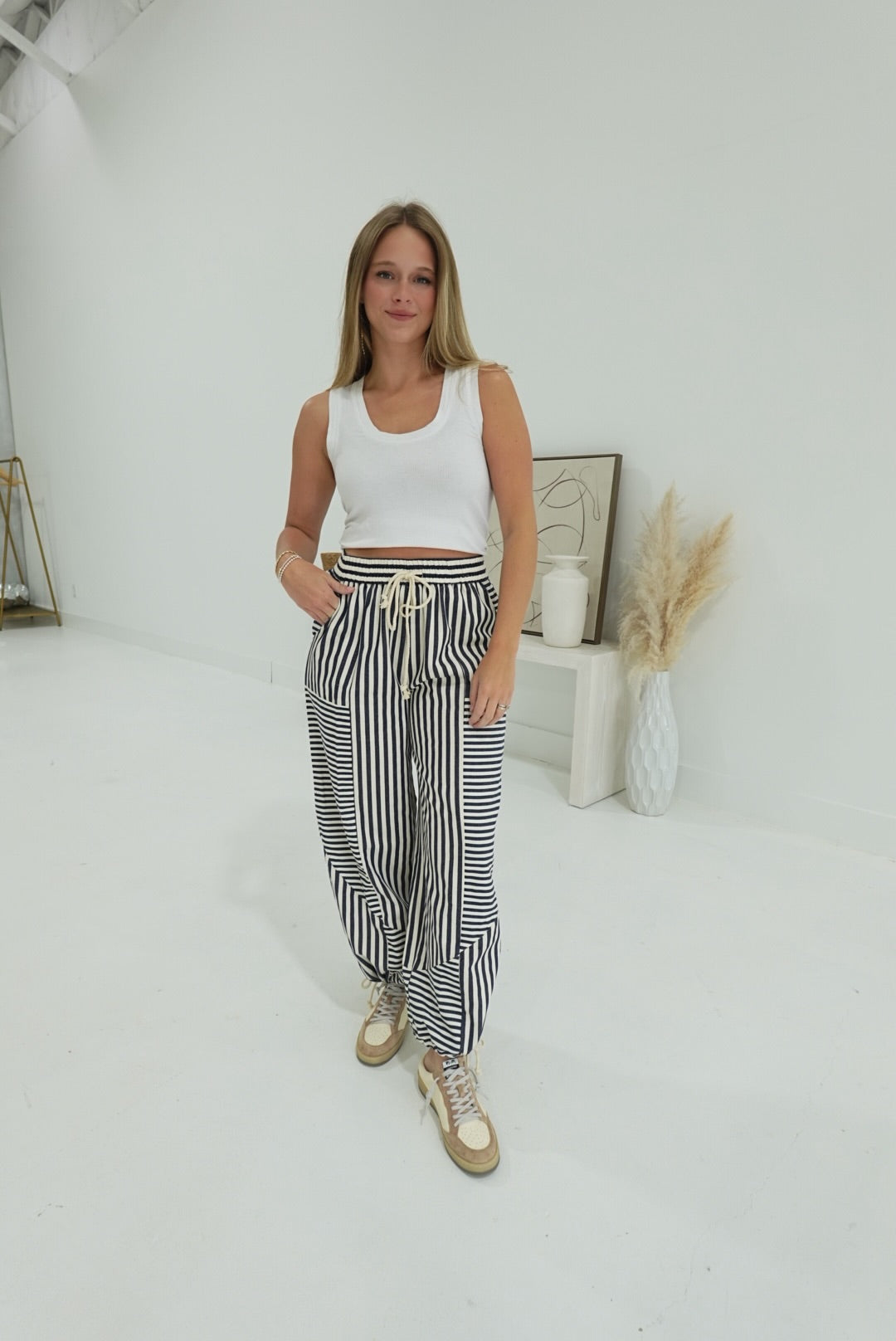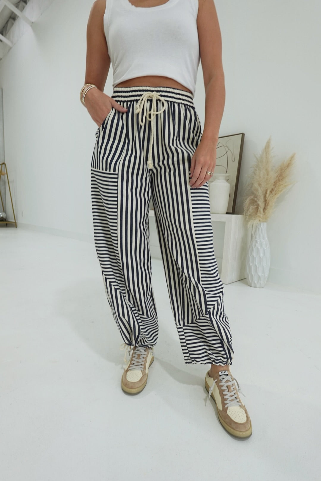 Sure Thing Parachute Pants combine style and comfort with a bold mixed striped design. Crafted for a relaxed fit, these pants offer breathable fabric and adjustable waist features, making them ideal for everyday wear or active outings. Their unique pattern adds a touch of personality to your wardrobe while ensuring easy movement and all-day comfort. Perfect for those who want to stand out without sacrificing comfort.
