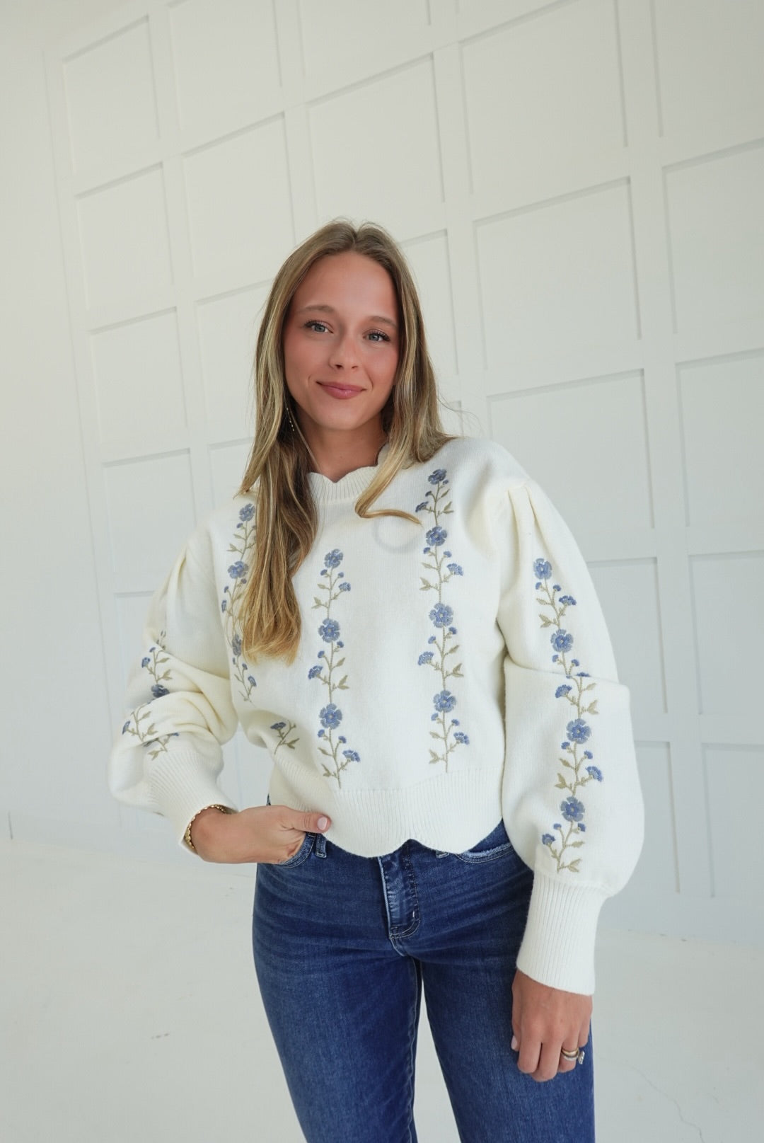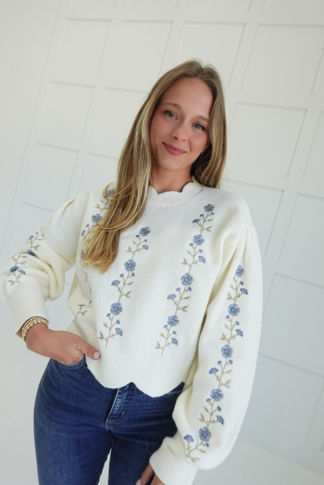 The Sweet On You Knit Top features delicate embroidered scallop details that add a touch of elegance to its soft knit fabric. Designed to provide comfortable wear while enhancing your style, this sweater blends cozy warmth with refined accents. Perfect for layering or wearing on its own, it brings a subtle charm to your wardrobe essentials.
