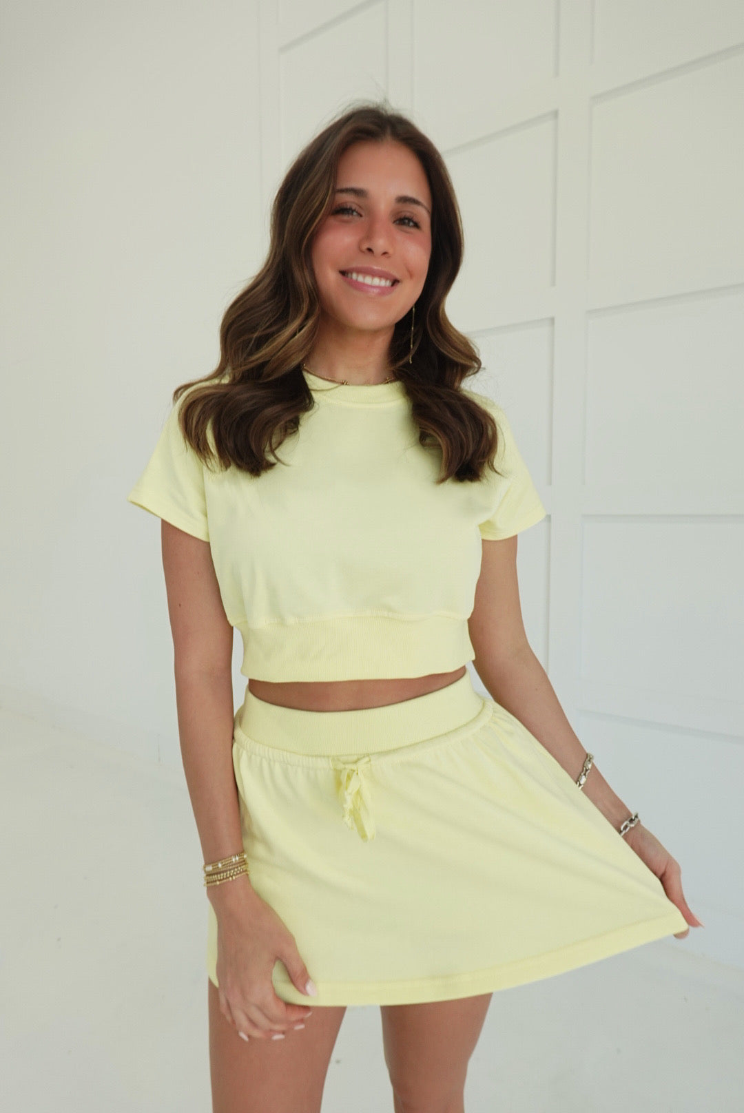 Effortless comfort meets playful style with this oversized short sleeve sweatshirt and skort set. The relaxed sweatshirt drapes beautifully over the coordinating skort, creating a put-together look that transitions seamlessly from casual outings to weekend adventures. Perfect for layering or wearing solo, this set delivers versatile styling in a timeless palette. Soft, breathable fabric keeps you comfortable all day long.