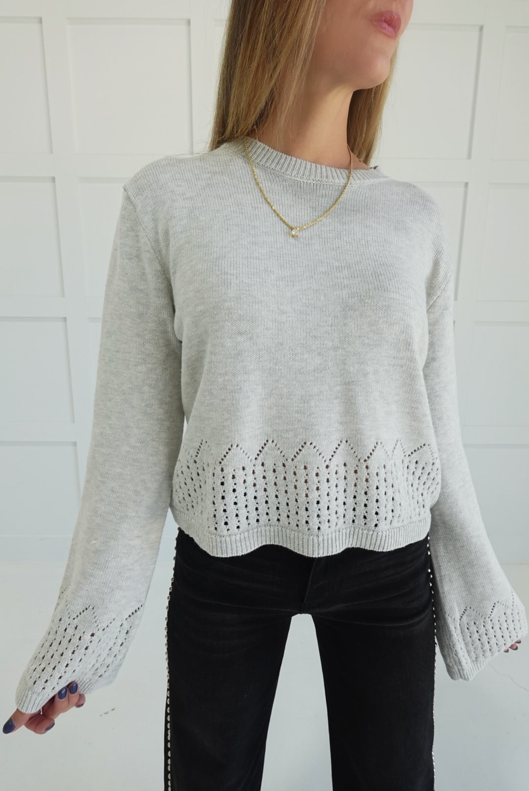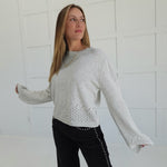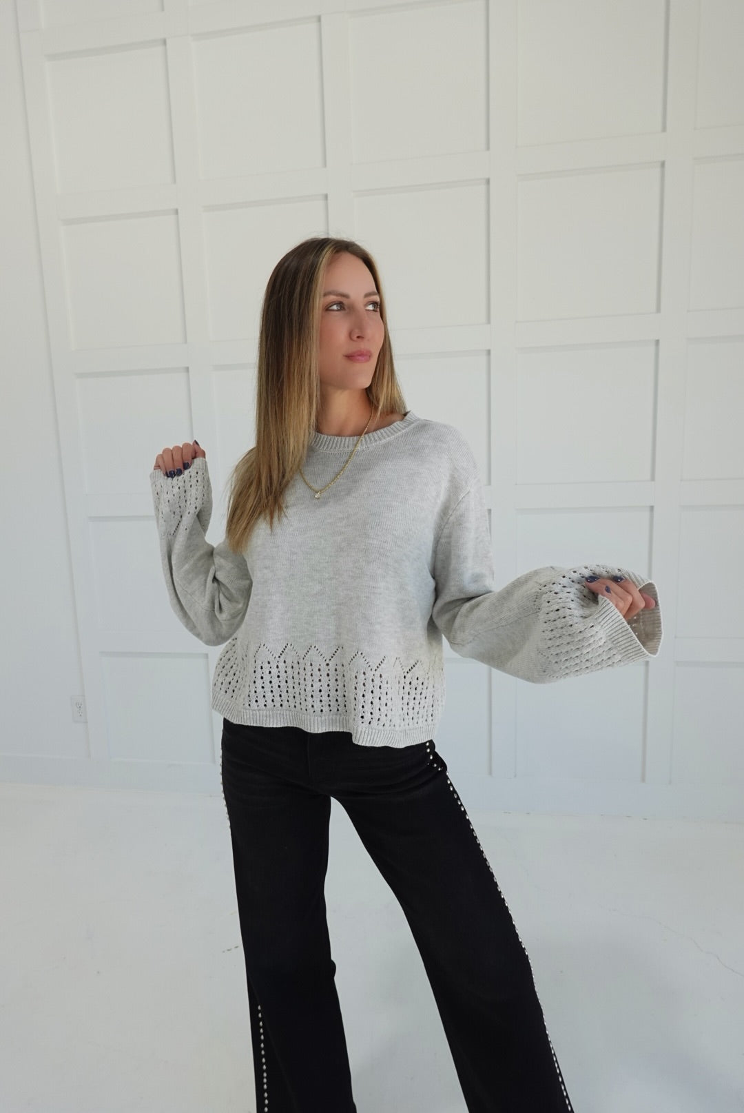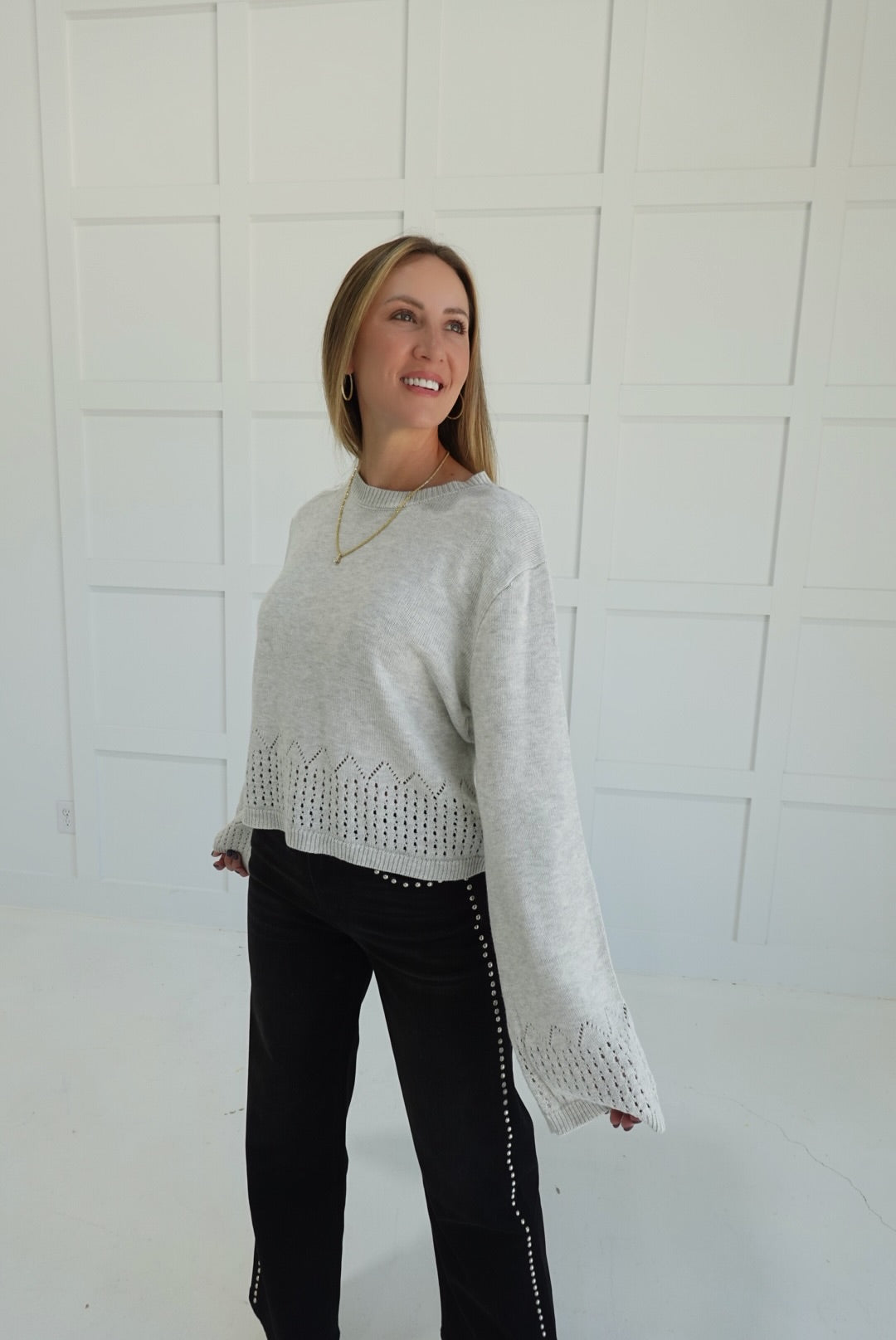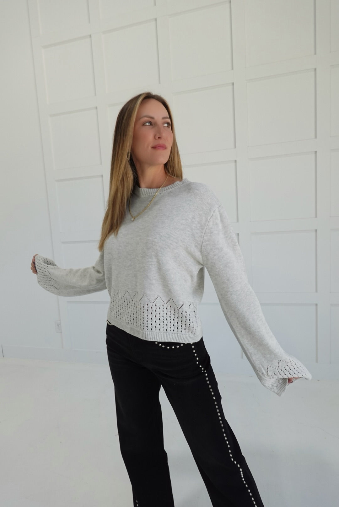 Experience comfort and style with the Take Note Sweater, featuring unique eyelet details that add subtle charm to its long sleeves. This cozy sweater is perfect for layering, offering both warmth and a touch of elegance to your everyday wardrobe. Ideal for staying comfortable while looking effortlessly put together.
