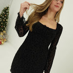 Embrace your boldest self in this stunning burnout mini dress. Delicate velvet florals dance across sheer long sleeves, creating an effortlessly romantic silhouette that commands attention. The lightweight fabric drapes beautifully while the mini length keeps things modern and playful. Perfect for nights out or special occasions, this dress celebrates your confidence with understated elegance. Layer it your way or wear it solo—either way, you'll feel absolutely radiant.
