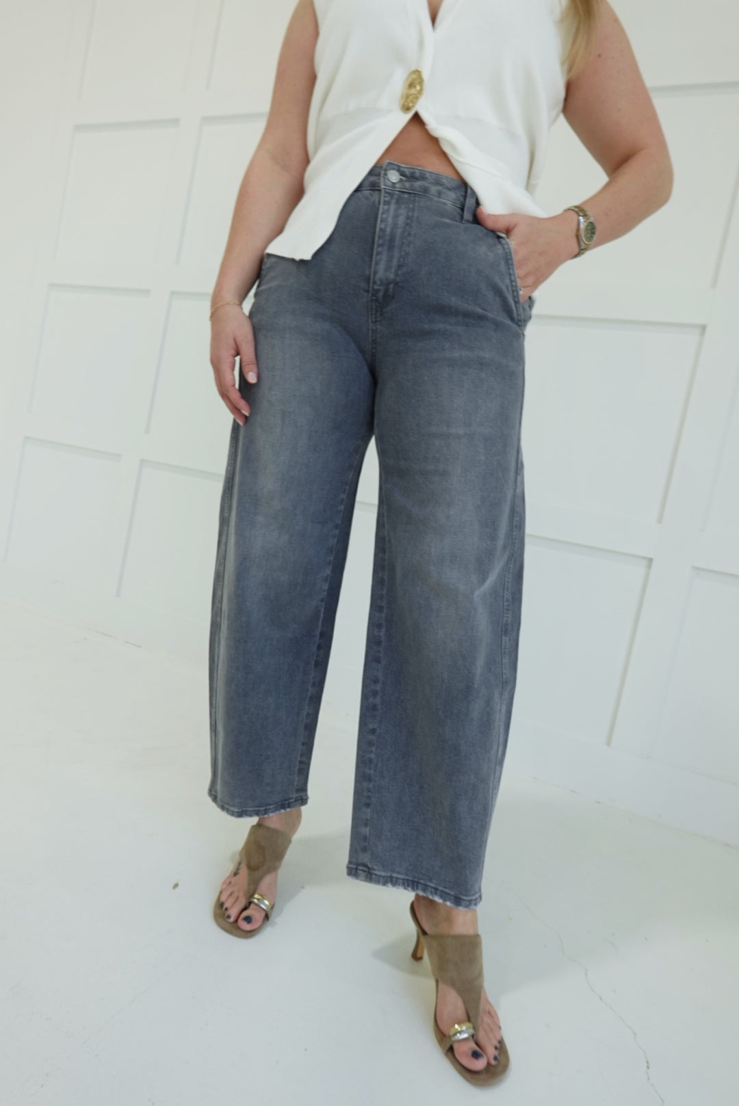 The Terrance Barrel Jeans command attention with their bold high-rise cut and dramatic barrel twist silhouette. These aren't your everyday denim—they're a statement piece that defies convention. The elevated waistband elongates your frame while the twisted leg creates an edgy, fashion-forward look that turns heads. Perfect for those ready to take risks with their style and own the room with confidence.