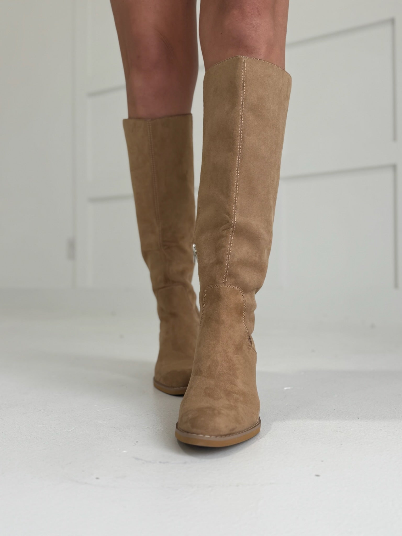 The Tessie Tall Suede Boot combines stylish design with practical features for everyday wear. Crafted from soft suede, it offers a comfortable fit and elegant look. The side half zipper closure ensures easy on and off while providing a secure fit around your calf. Ideal for cooler seasons, these boots bring both warmth and sophistication to your wardrobe.