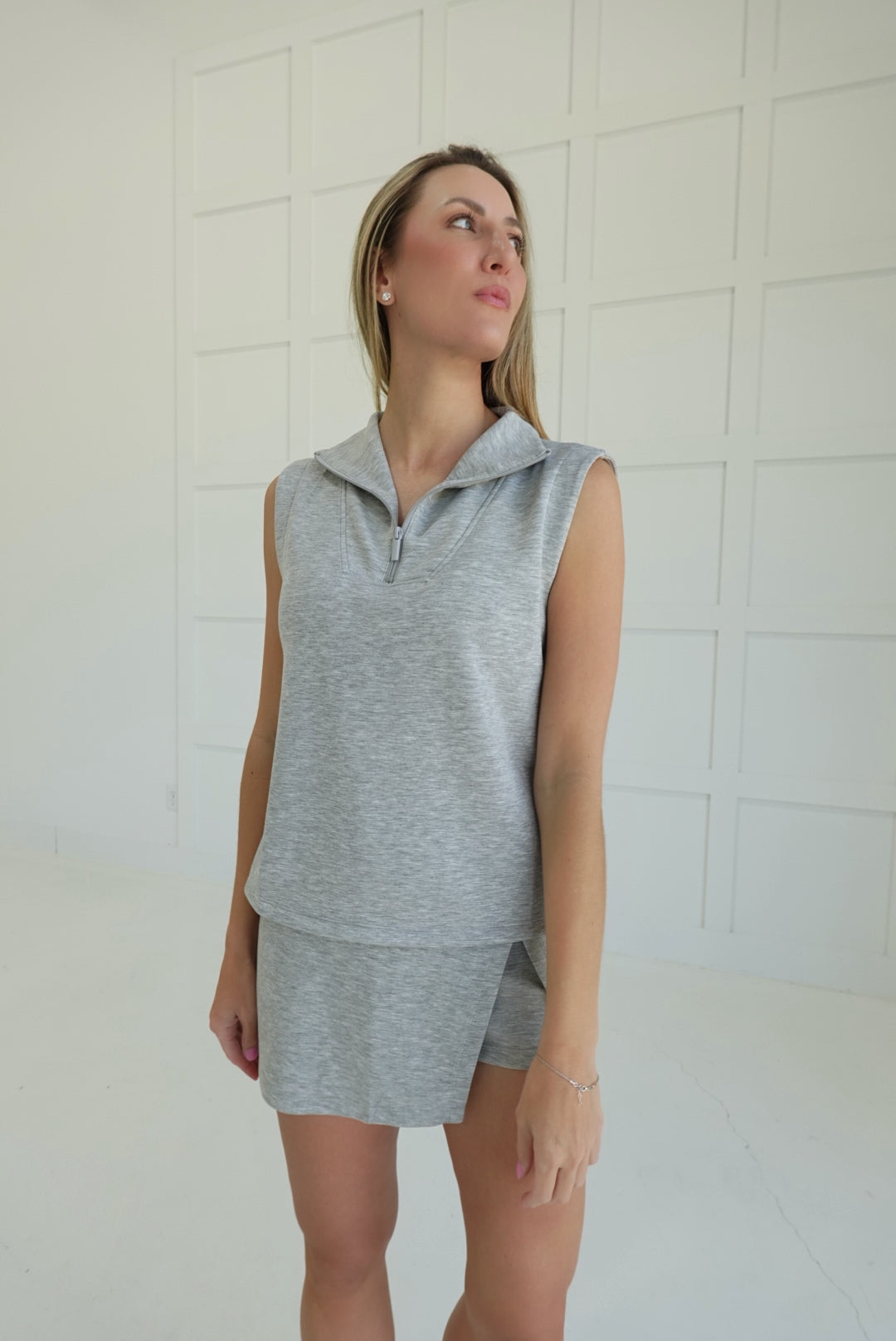 - Front Slit Skort With Zipper Detail Sleeveless Top