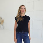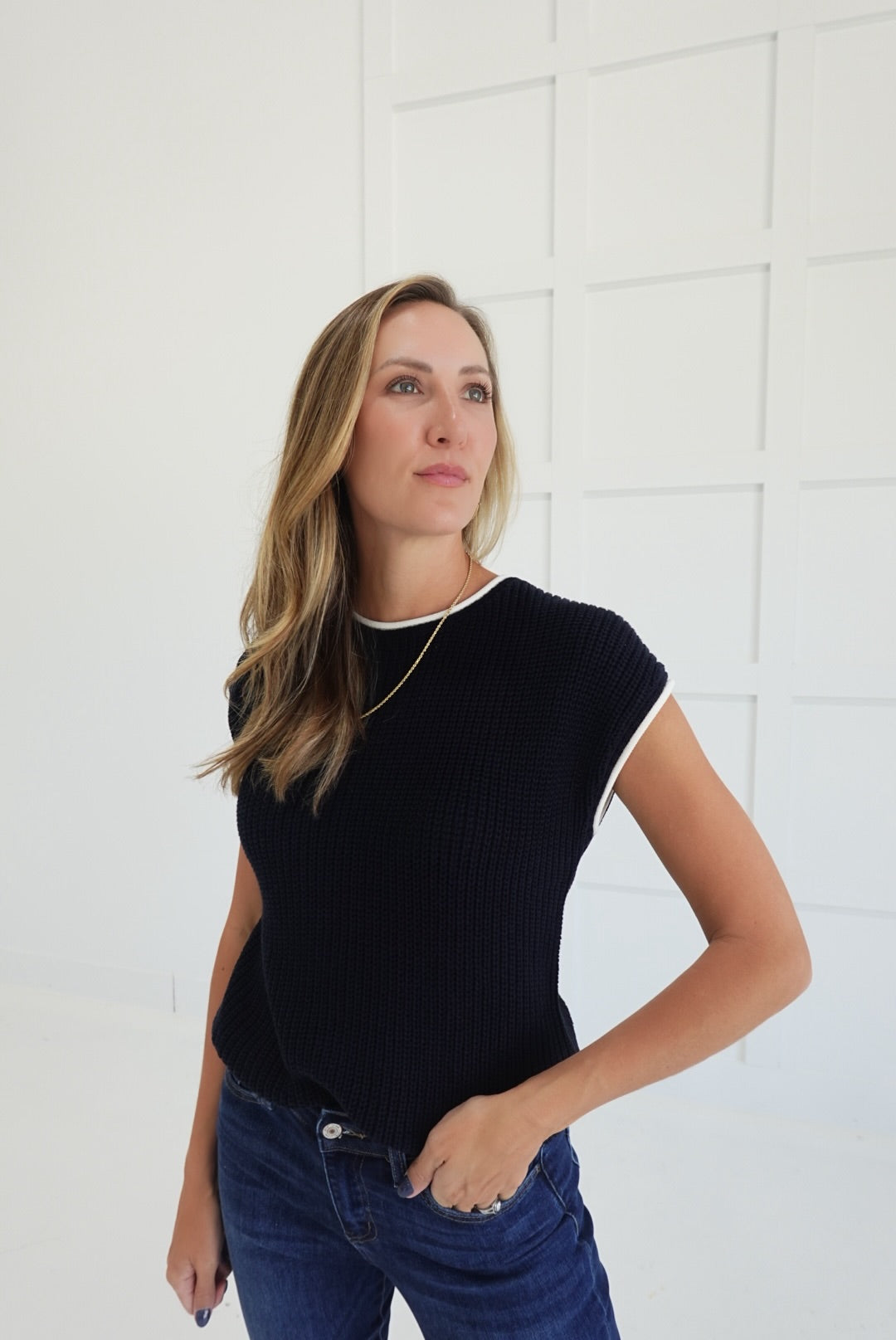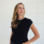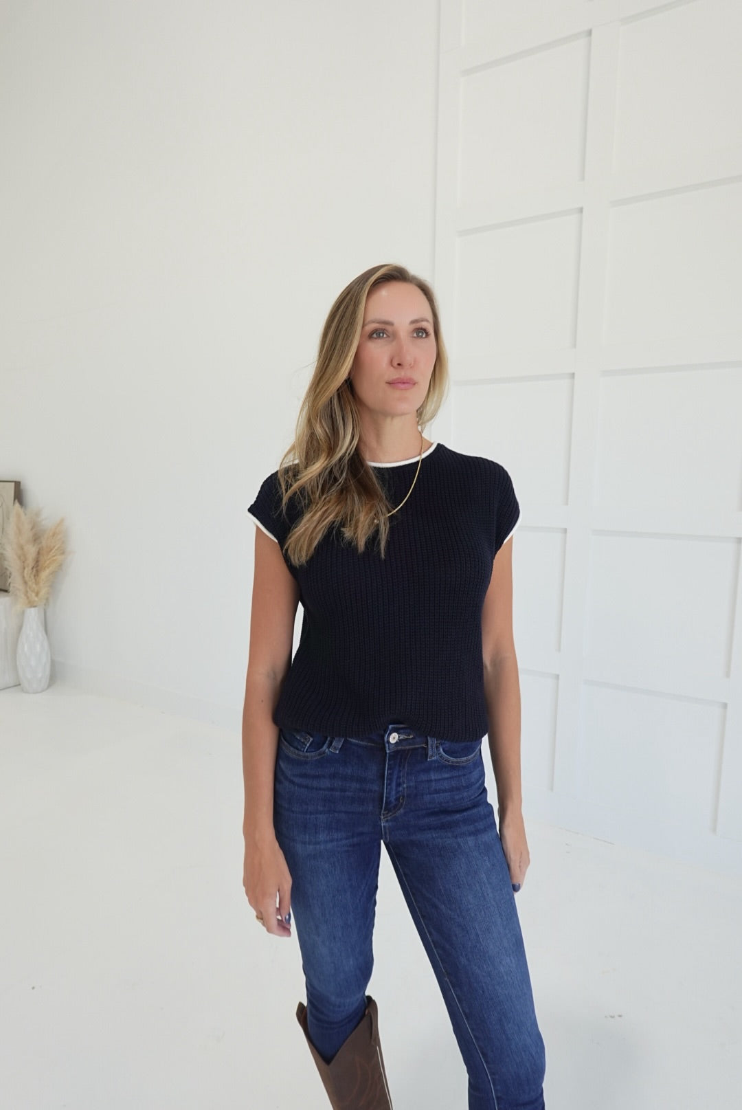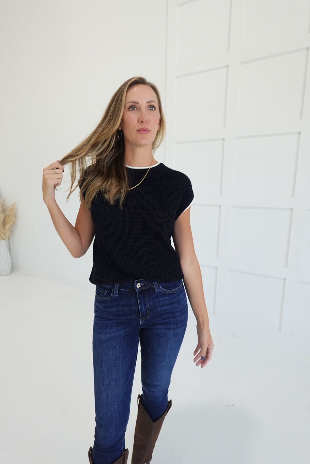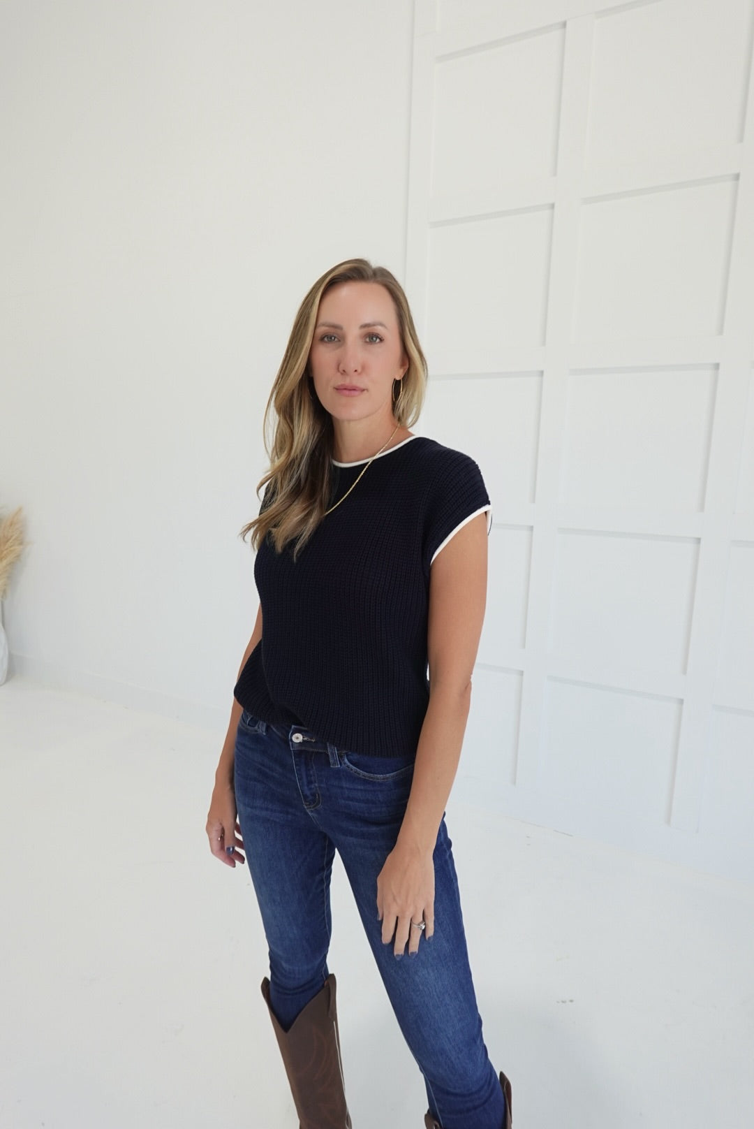 The Allyssa Sweater Top features a flattering contrast trim that adds subtle detail to its short sleeves and knit fabric. Designed for comfort and style, this lightweight sweater is perfect for layering or wearing on its own. The soft knit material ensures a cozy feel, making it an ideal choice for both casual and polished looks. Its thoughtful design helps you stay comfortable while presenting a refined, versatile appearance.
