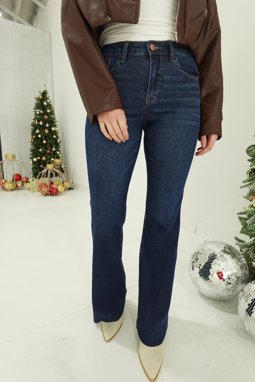 - High Rise Flare Jeans With Corduroy-Like Texture