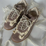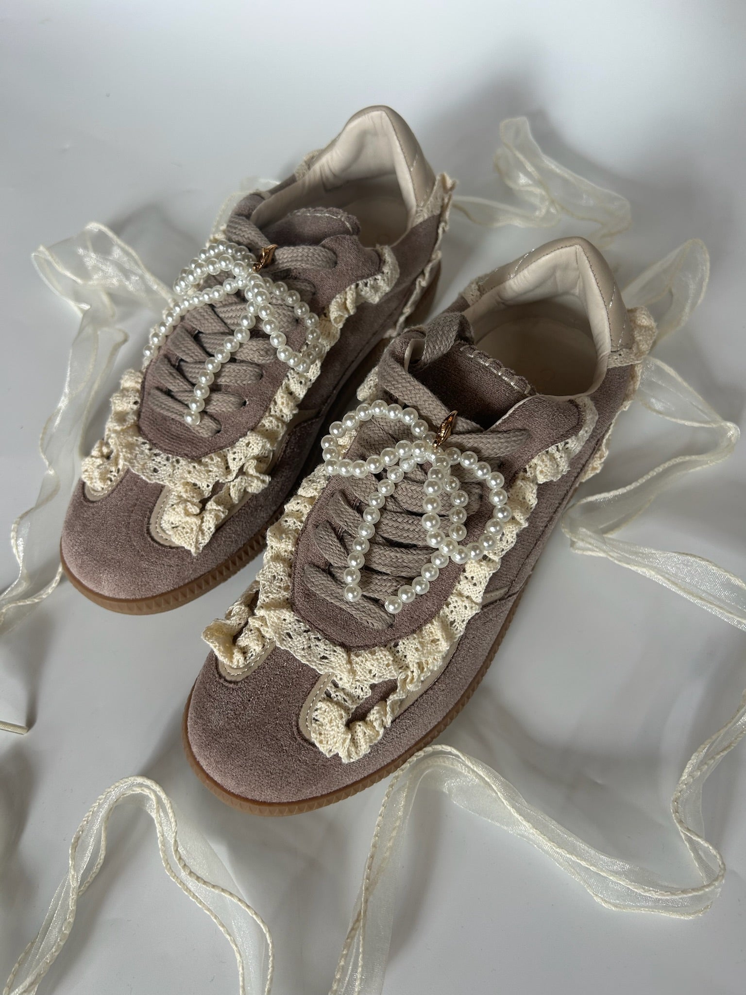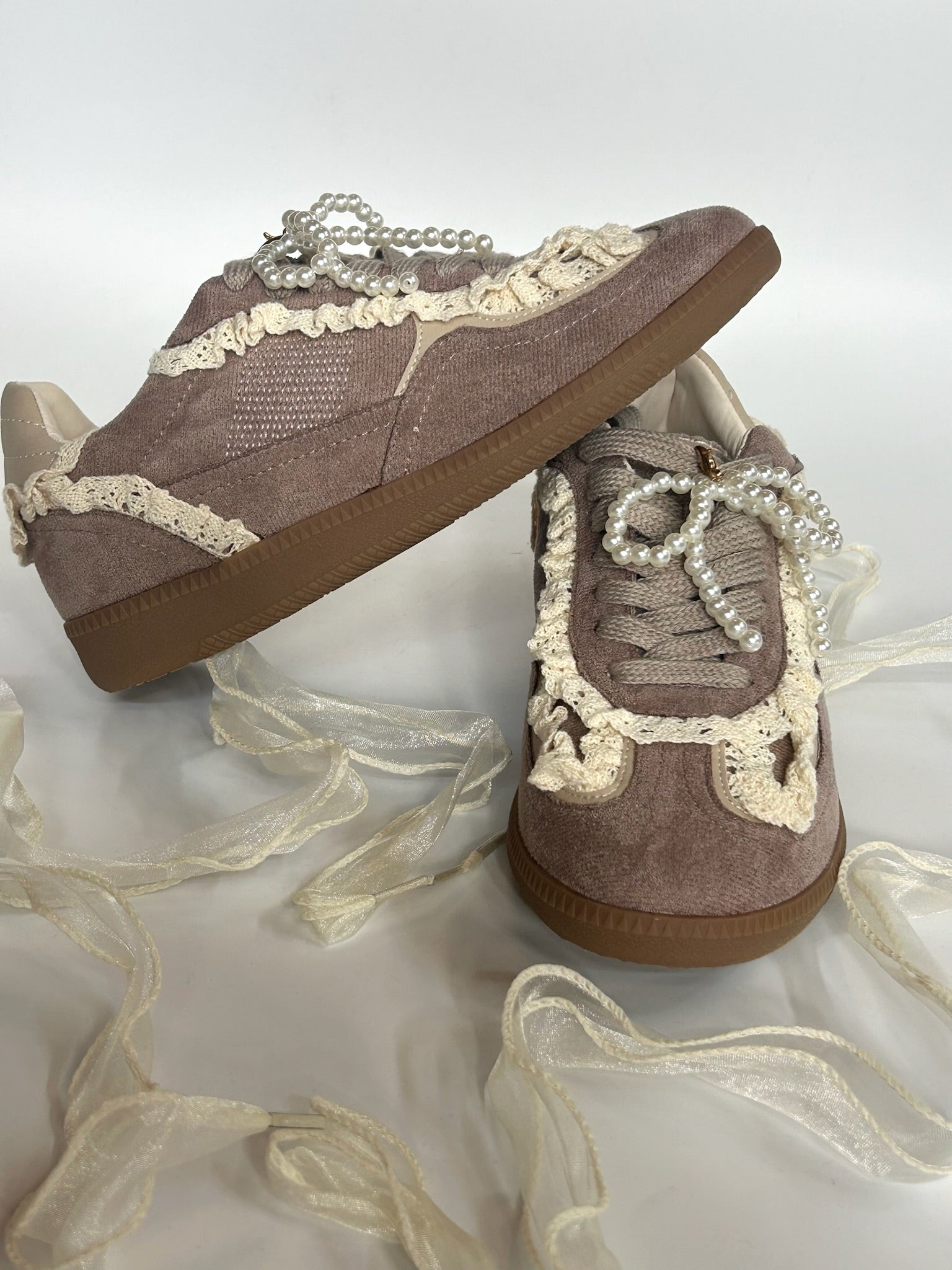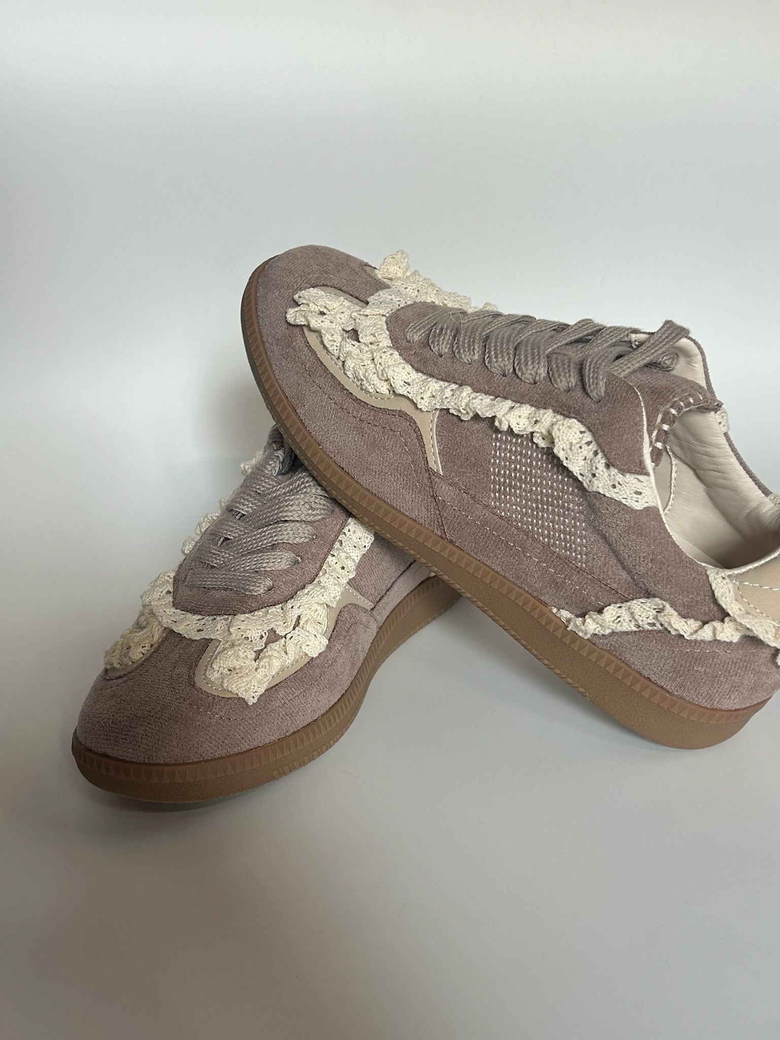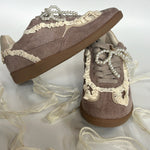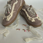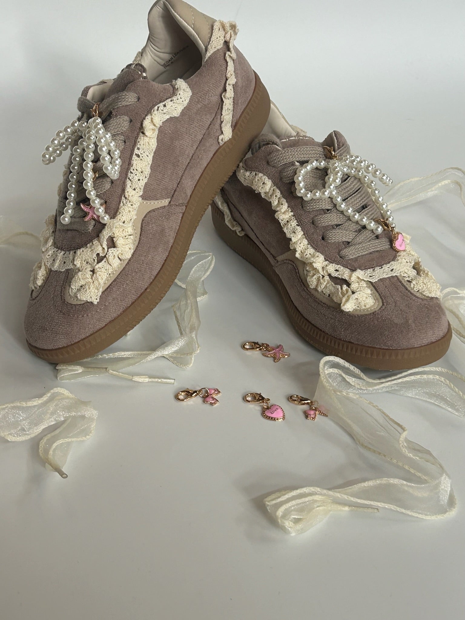 The Charming One Sneaker combines playful lace frilling detail with the unique touch of removable charms, allowing you to personalize your look effortlessly. Designed for comfort and style, these sneakers add a charming flair to any outfit while giving you the flexibility to change up your accessories whenever you like. Perfect for those who love a blend of subtle elegance and fun customization in their footwear.