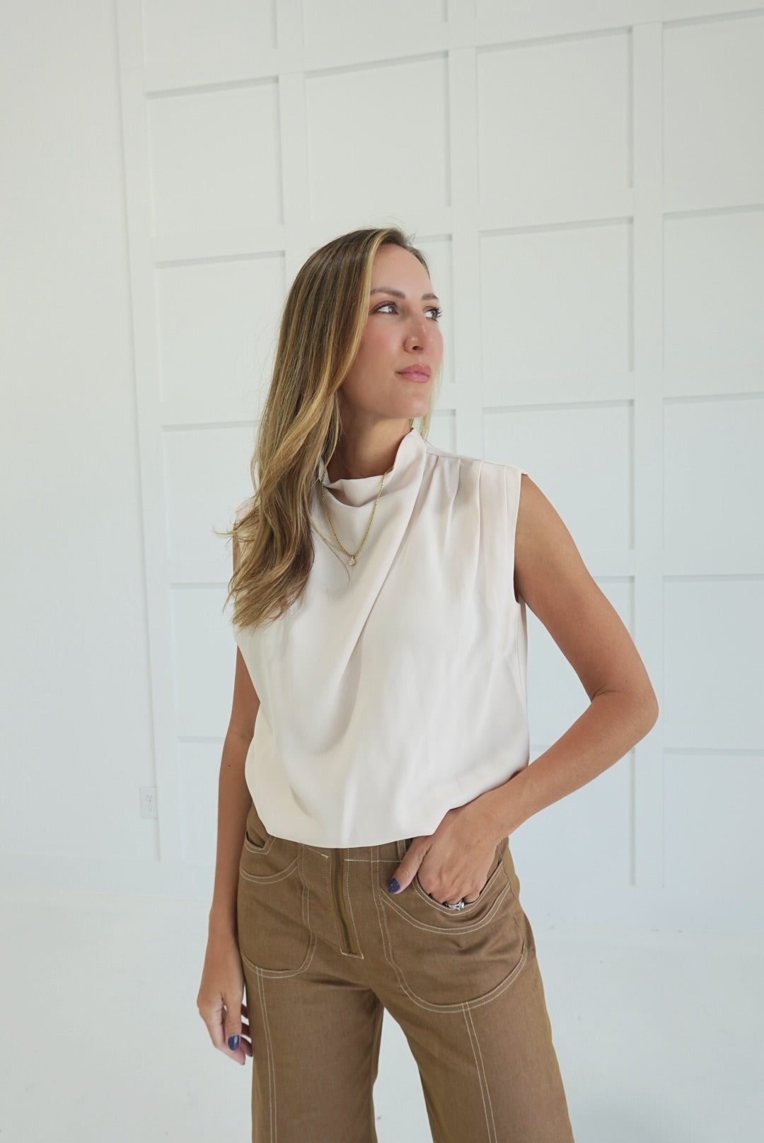 The Collective Top is a sleeveless design featuring a chic mock neckline that offers a polished, modern look. Its breathable fit allows for all-day comfort, making it a versatile wardrobe essential. Perfect for layering or wearing on its own, this top supports your style effortlessly from casual outings to more refined occasions.