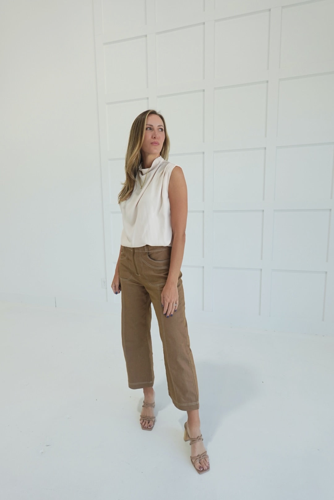 - Sleeveless Top With Dart Detail At Shoulders