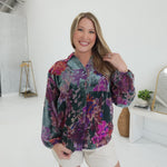 - Button Down Velvet Burnout Blouse