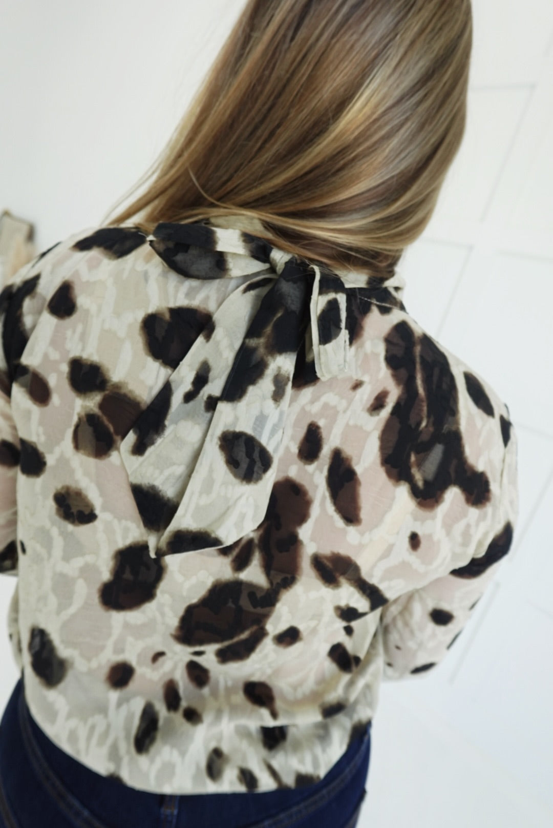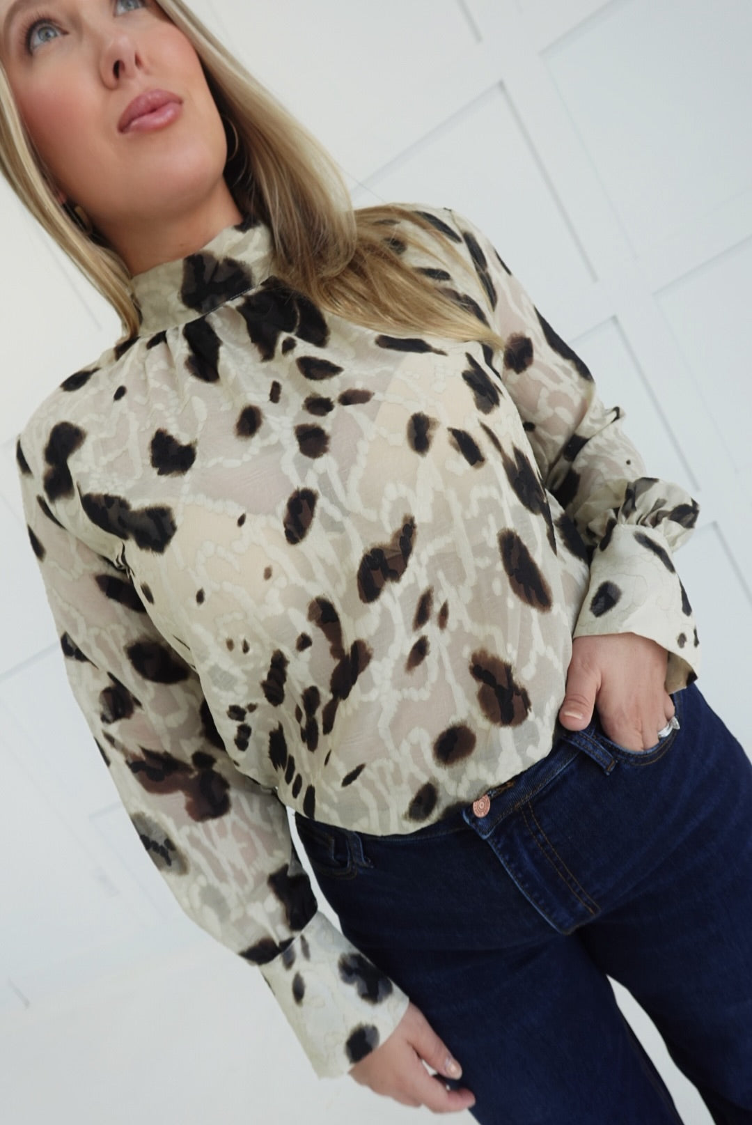 The Herd Blouse offers a stylish blend of elegance and comfort with its high neck and back tie detail. Crafted from lightweight mesh, this long-sleeve blouse provides breathability while adding a touch of sophistication to your look. Perfect for layering or wearing on its own, it effortlessly complements both casual and dressy outfits, giving you confidence and style in any setting.