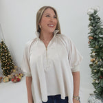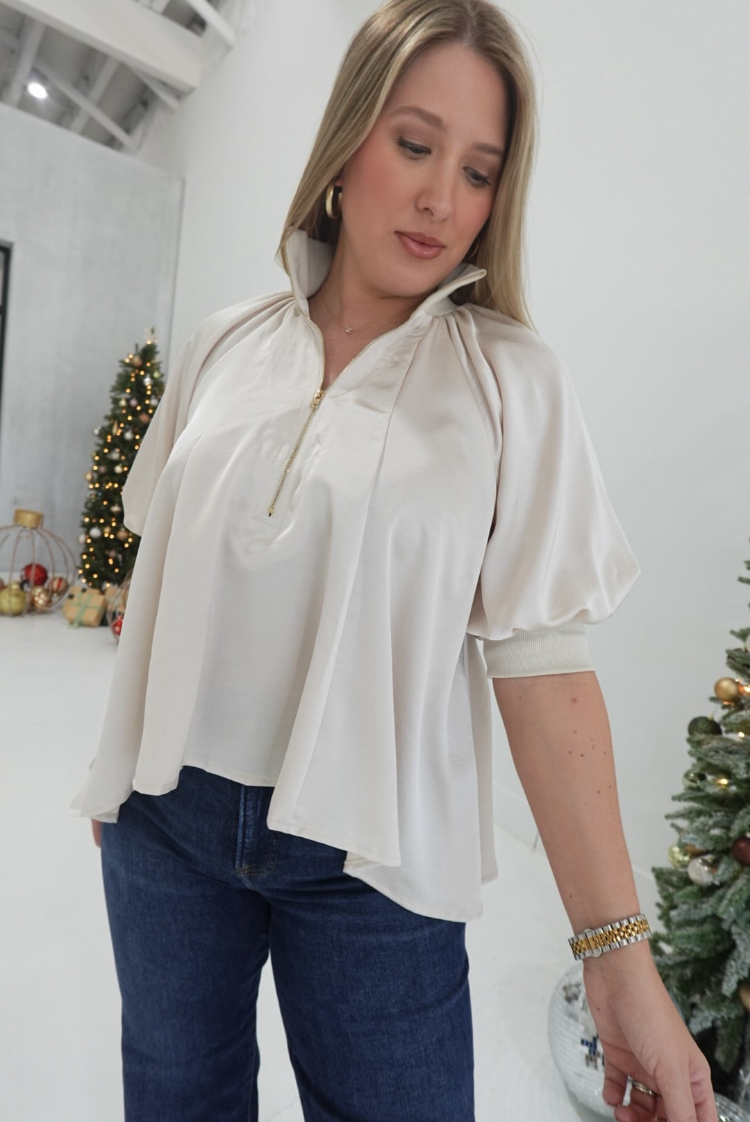 The Jane Top features a flattering mock neck and stylish banded puff sleeves, combining comfort with a touch of elegance. Its rich color and thoughtful design make it easy to dress up or down, supporting your versatile wardrobe needs. Perfect for everyday wear or special occasions, this blouse effortlessly enhances your look while providing a comfortable fit throughout the day.