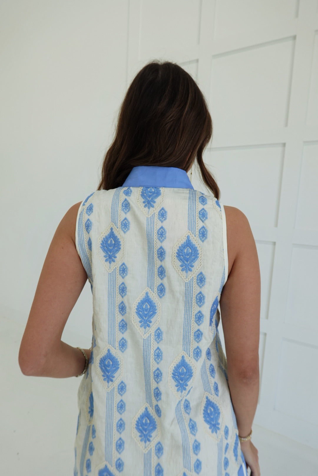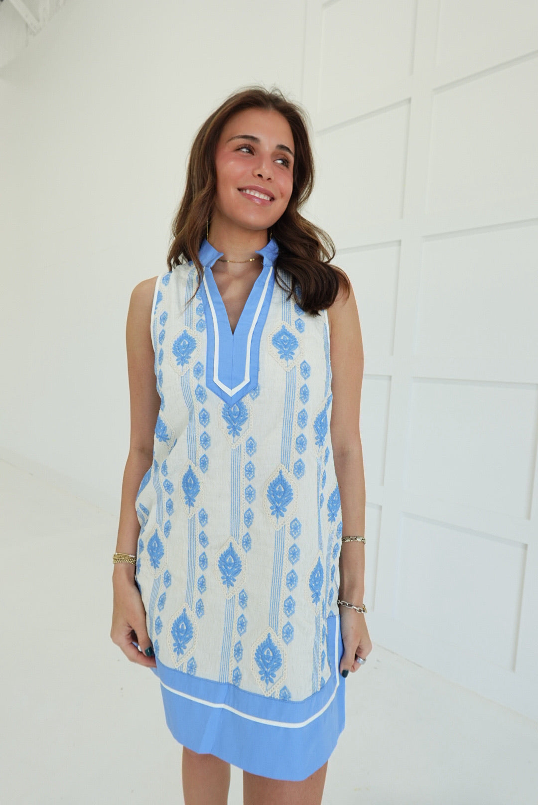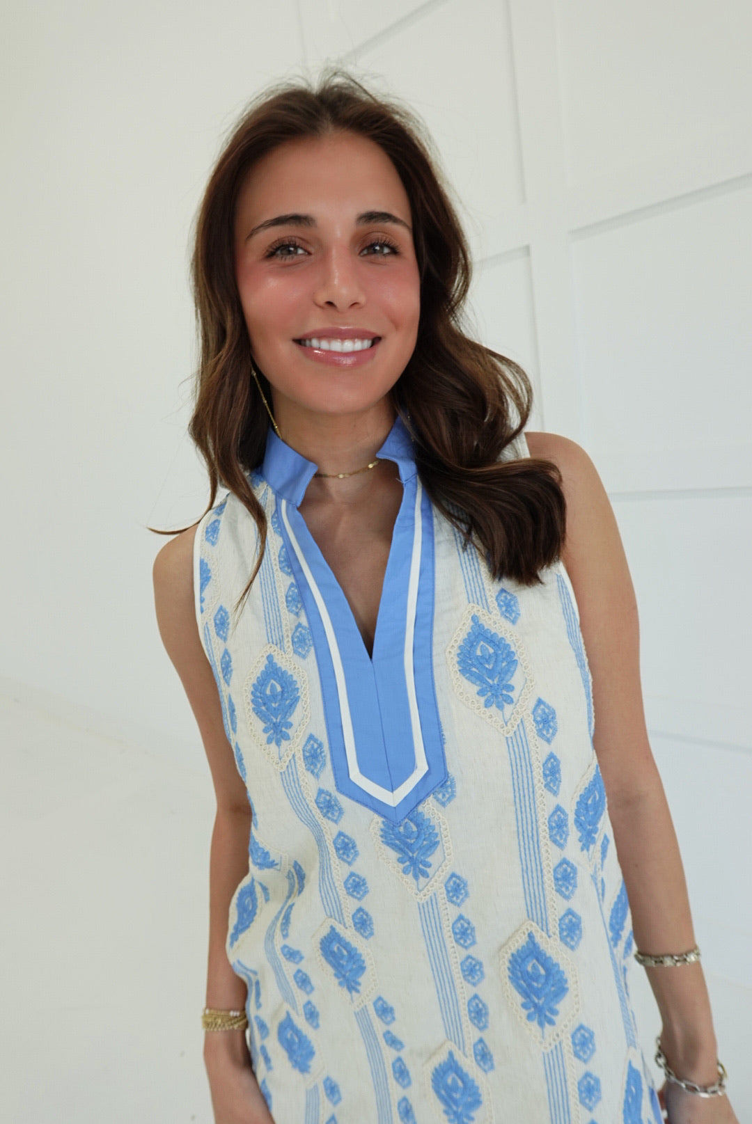 The Lily Mini Dress commands attention with its bold embroidered motif and fearless silhouette. This sleeveless design features a striking contrast trim band collar and plunging V-neck that demands confidence. Practical side pockets keep you moving, while the fully lined, non-sheer woven construction ensures you're covered without compromise. Lightweight and effortlessly chic, it's the dress that refuses to blend in.