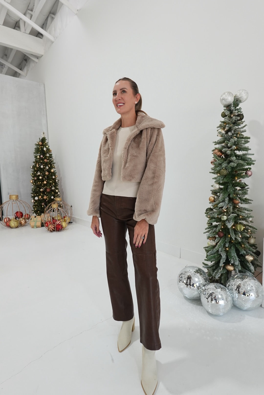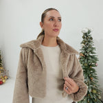 Embrace cozy elegance with The Moffit Fur Coat - Coco. This cropped faux fur coat offers warmth and style, making it a perfect layering piece for cooler days. Soft to the touch and easy to pair with any outfit, it delivers comfort without compromising on a chic, modern look. Ideal for adding a luxurious feel to your wardrobe while staying cruelty-free.