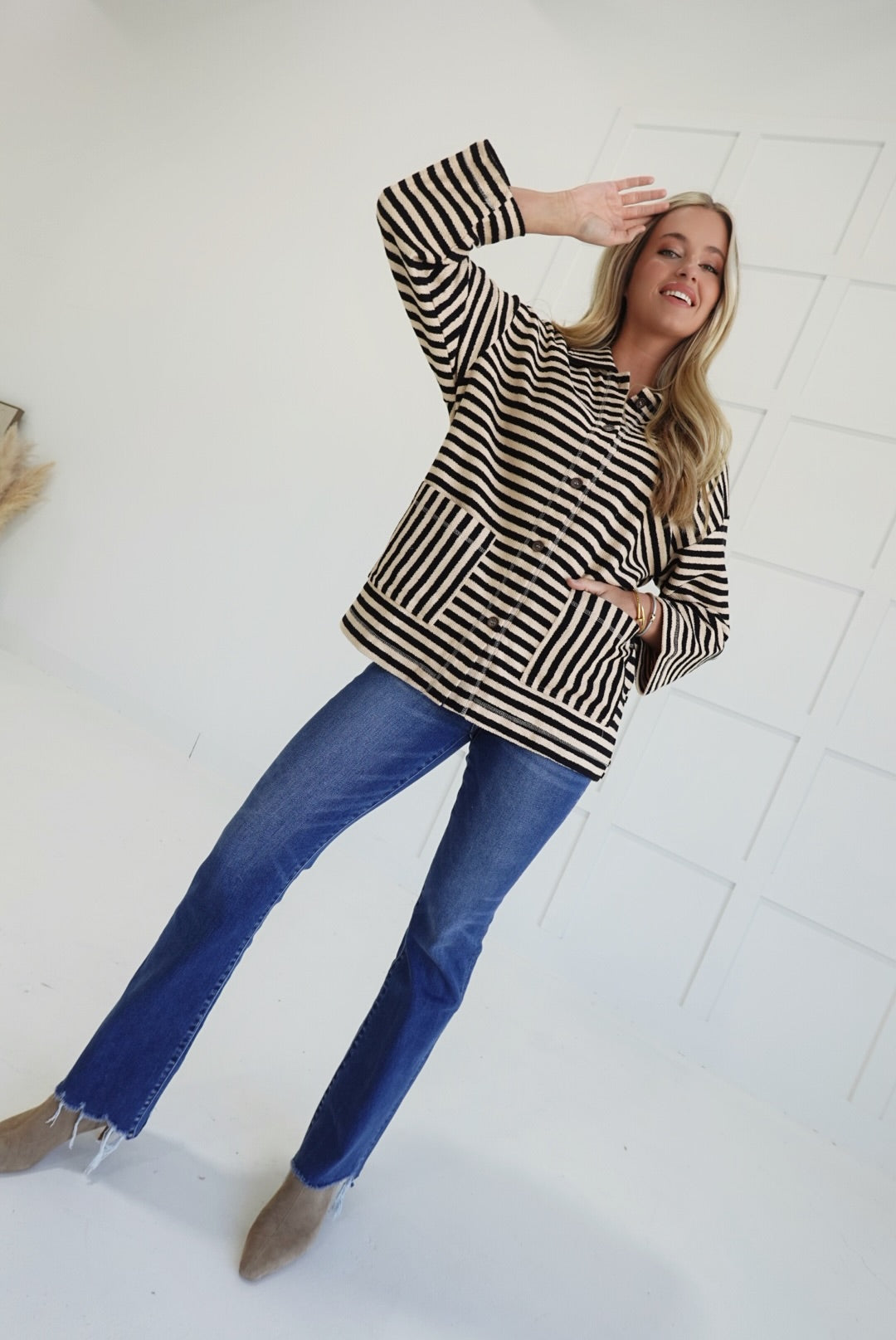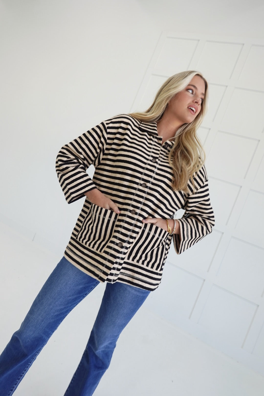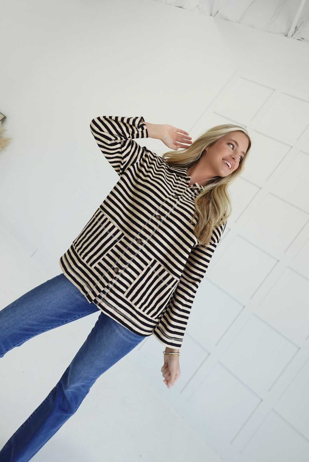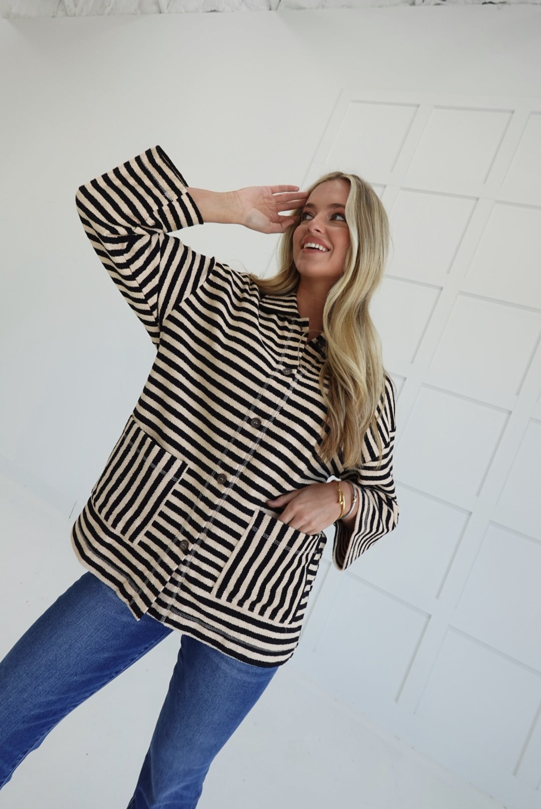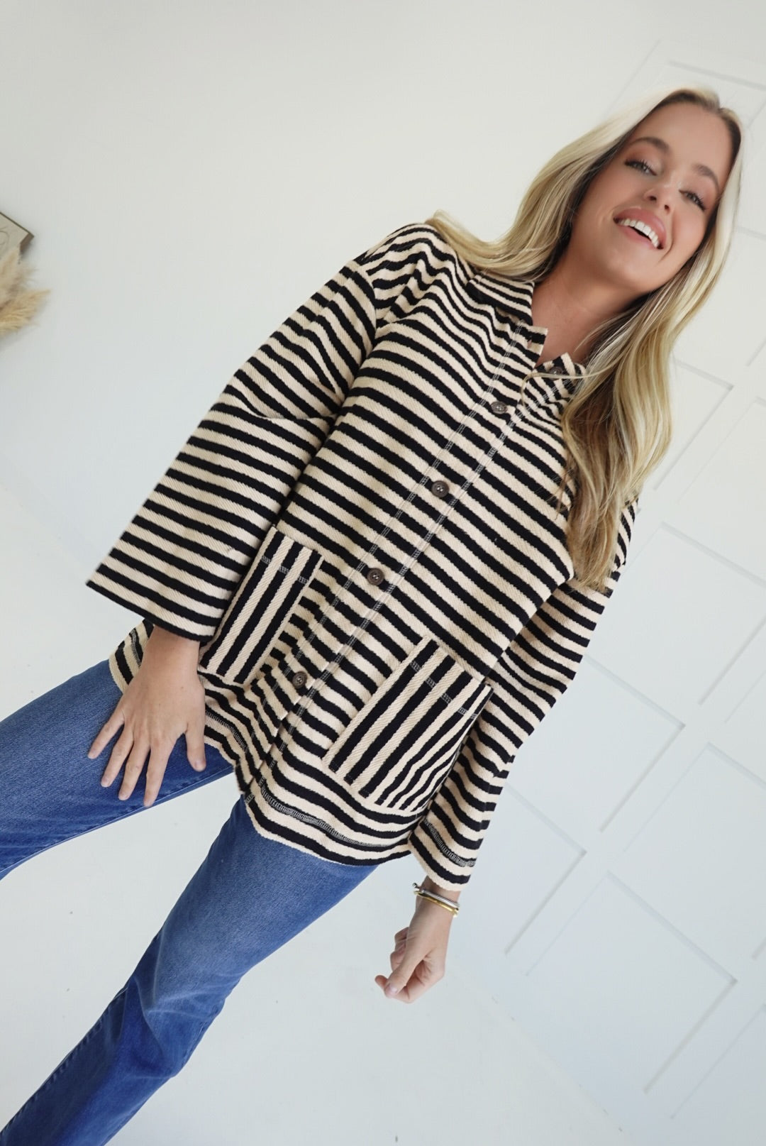 - Oversized Striped Button Up Jacket