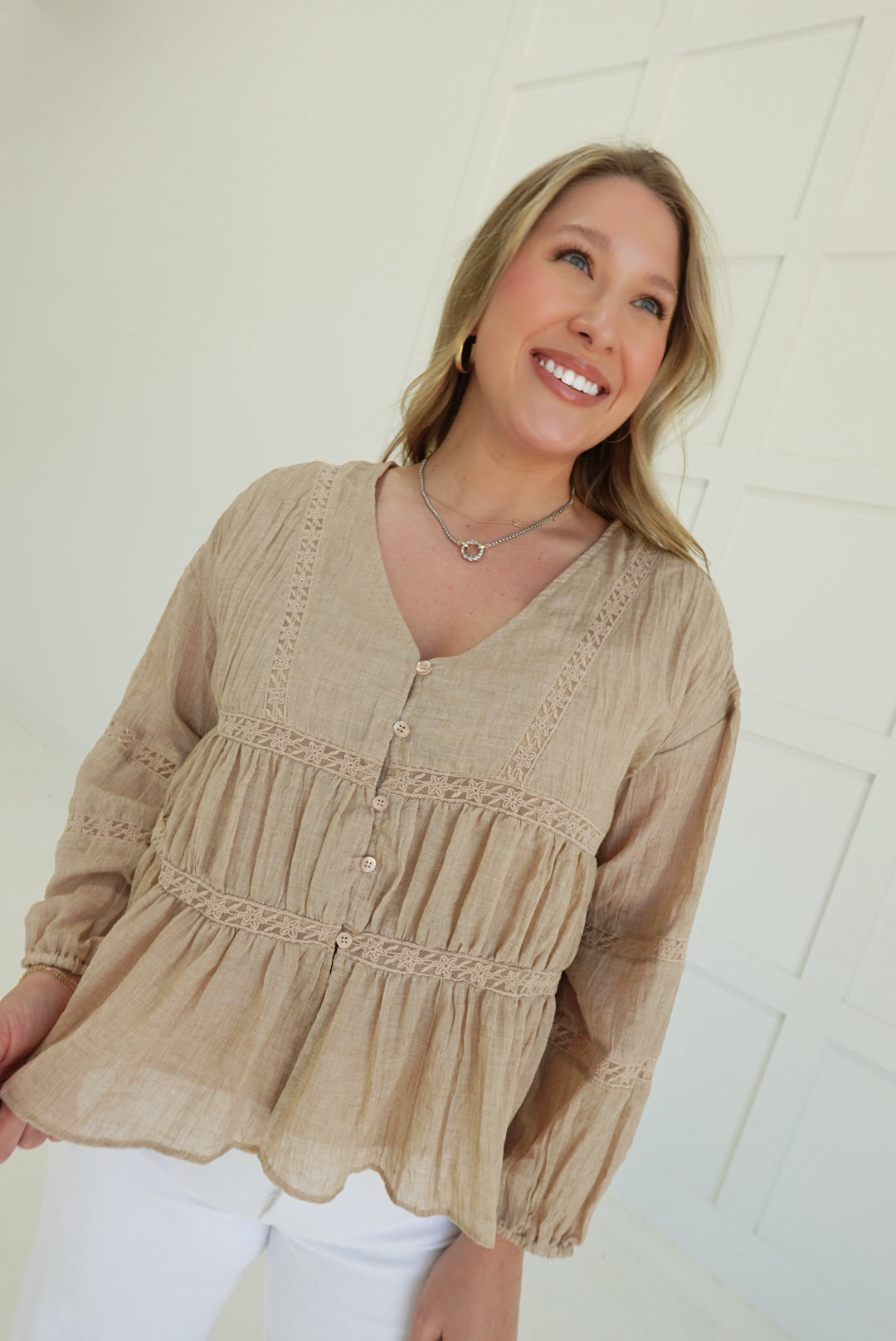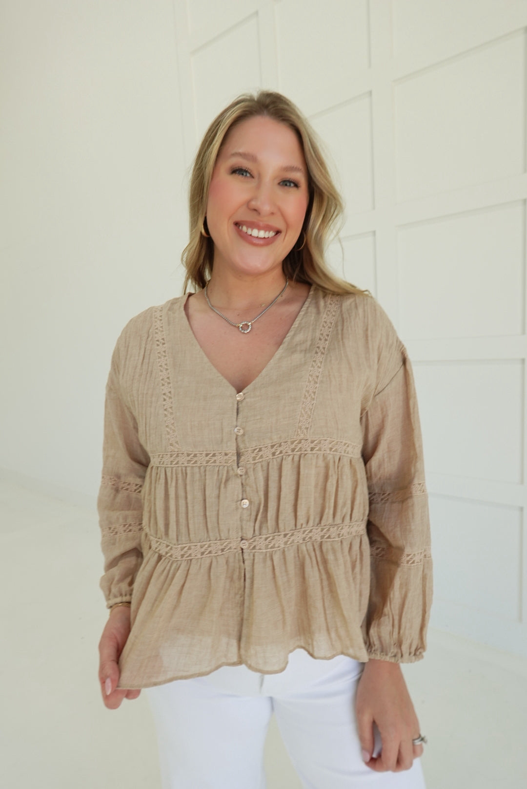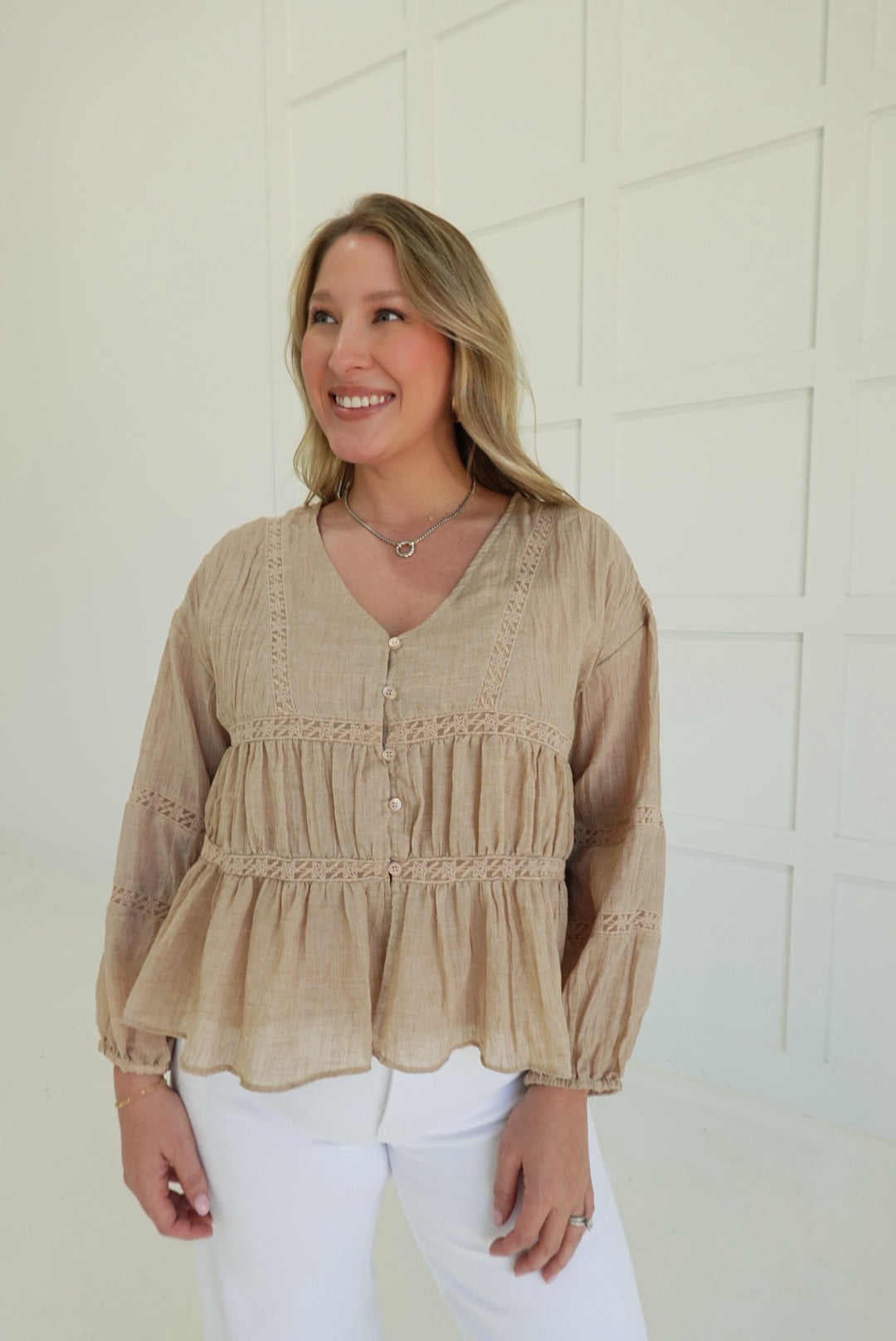 The Outcome Top features a flattering V-neckline paired with delicate ruffle detailing that adds movement and dimension to your silhouette. Intricate laser-cut accents create visual interest while maintaining an elegant, refined aesthetic. This versatile piece transitions seamlessly from casual outings to more polished occasions, giving you a confident look that celebrates your personal style. Perfect for layering or wearing solo, it's designed to make you feel effortlessly put-together.