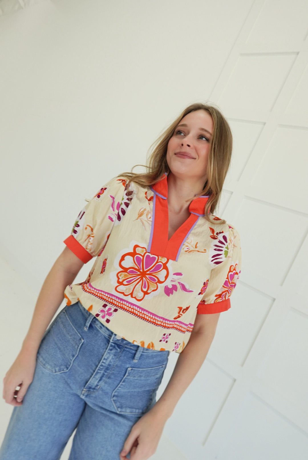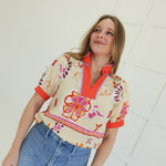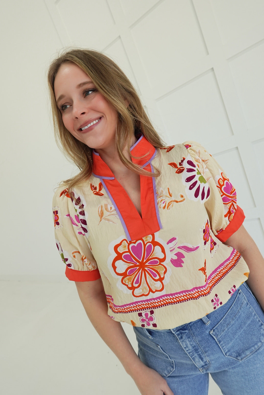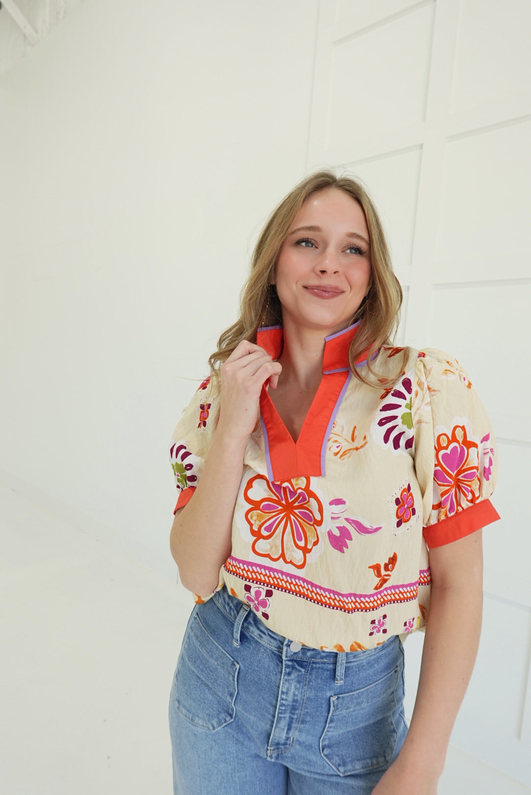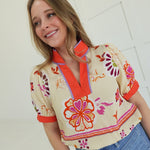 - Boho Floral Top With Stand Collar
