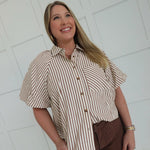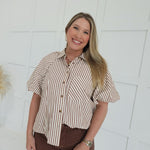 - Striped Button Down Top With Bubble Sleeves