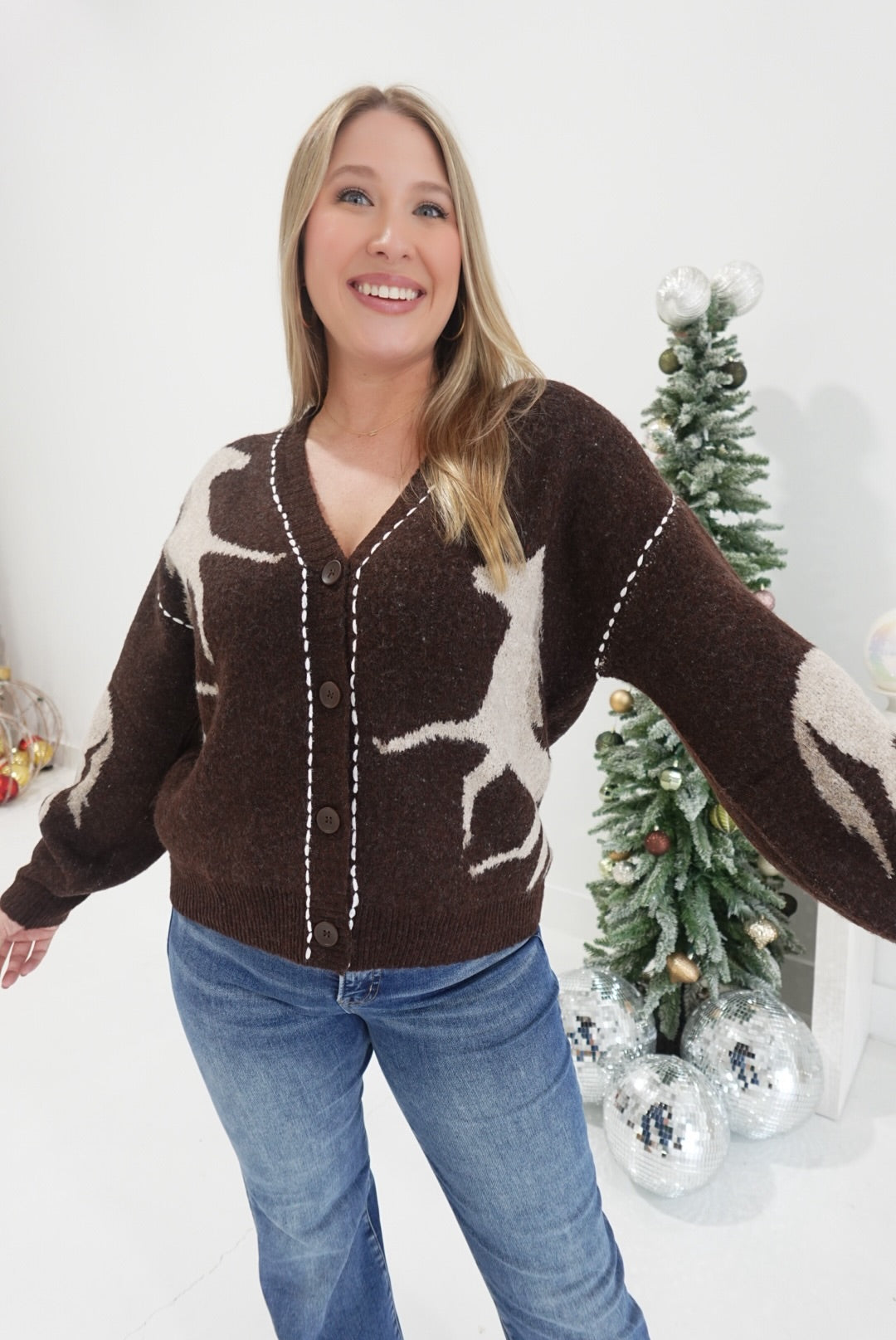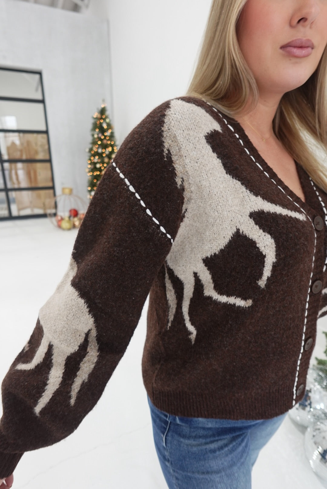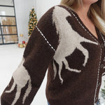 Wrap yourself in warmth and charm with The Reigns Cardi. This cozy knit features a unique horse print that adds a touch of rustic elegance to your wardrobe. Perfect for layering on chilly days, it combines comfort and style to keep you feeling supported and at ease wherever you go. Embrace the season with this inviting cardigan designed to brighten your everyday looks.