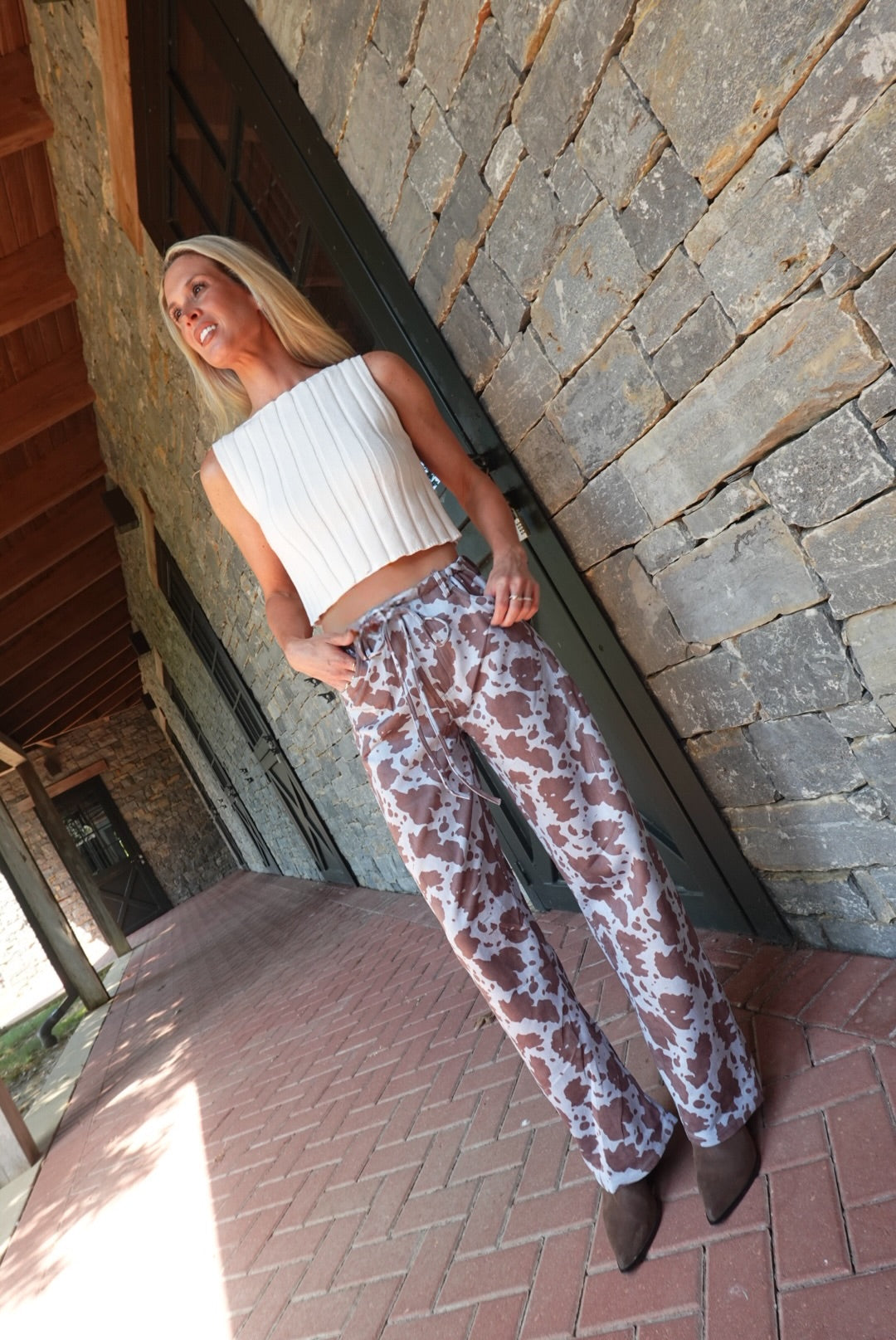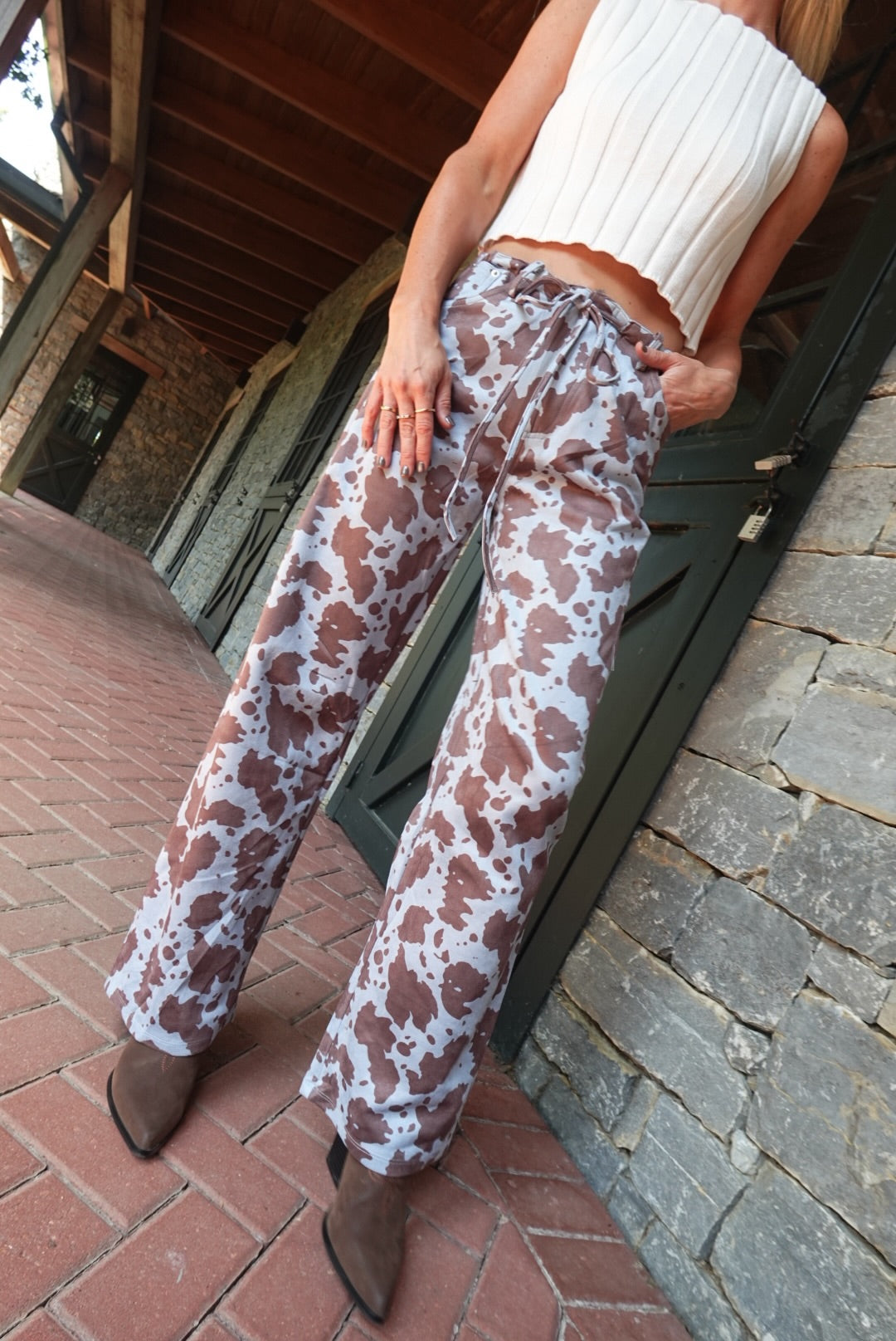 - Printed Pants With Drawstring Tie