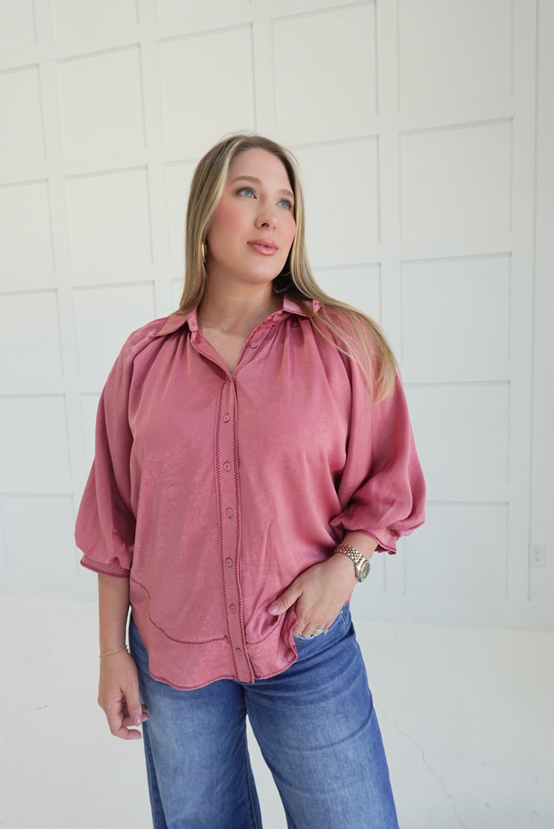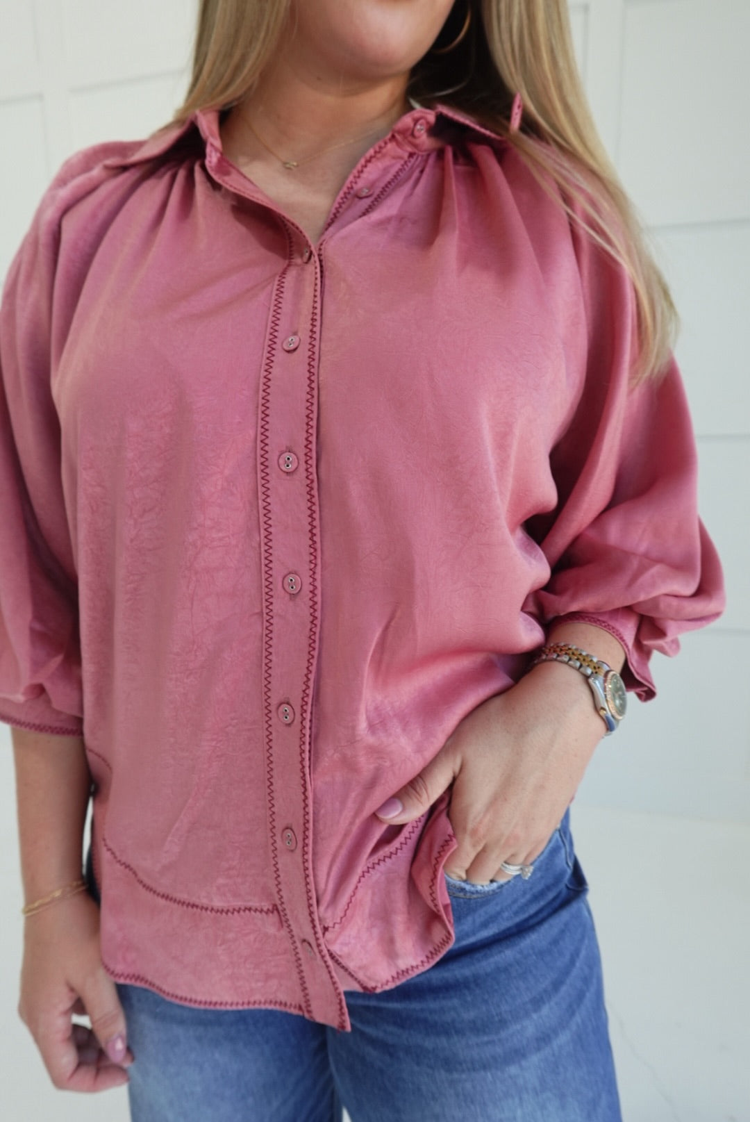 - Satin Blouse With Contrast Stitching Detail