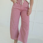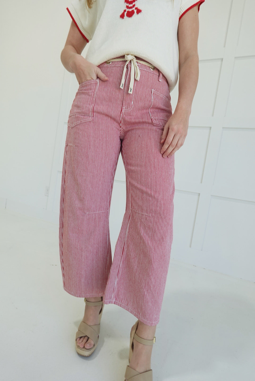 The Villas Barrel Pants deliver bold silhouette with a relaxed, tapered leg that commands attention. Featuring a drawstring waist for adjustable fit and striking stripe detailing, these pants balance edge with wearability. Grommet-trimmed waistband adds an unexpected industrial touch, while functional pockets keep you grounded. Perfect for those ready to take fashion risks without sacrificing comfort.