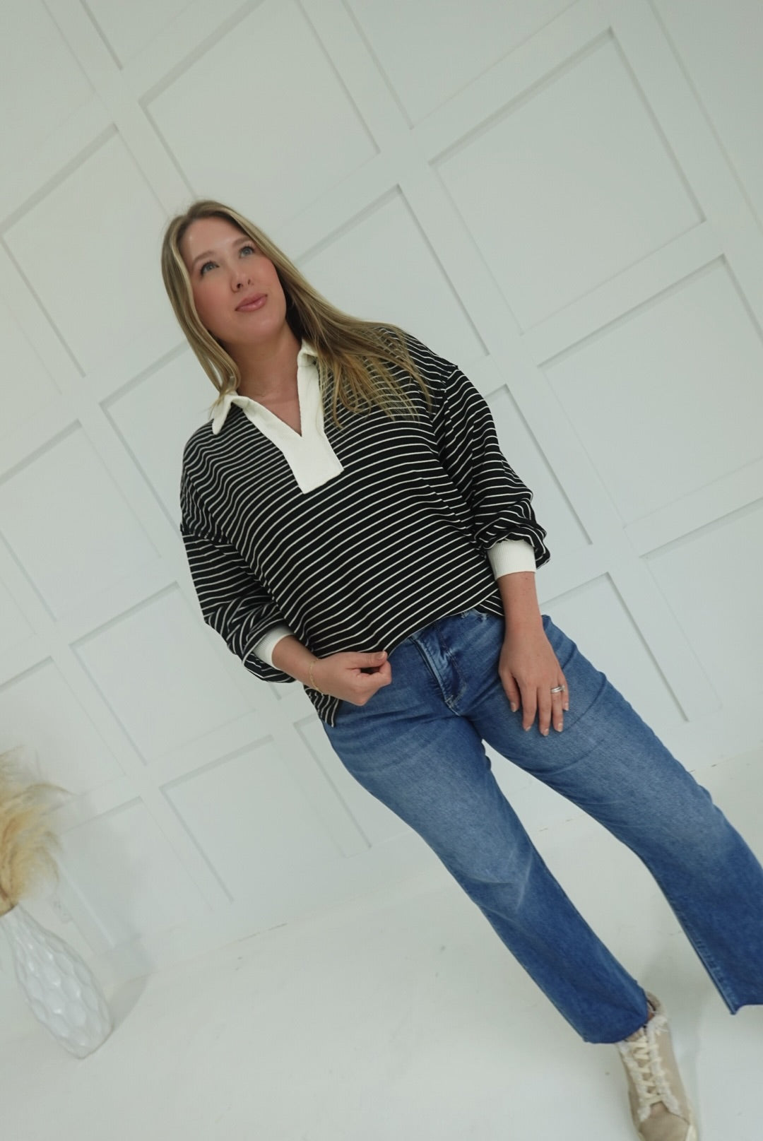 Stay comfortable and stylish in the Things in Common Top. This long sleeve knit top features a subtle stripe contrast that adds a modern touch to your everyday look. Crafted for a cozy fit, it’s perfect for layering or wearing on its own, giving you versatile options for work or casual outings. Its soft fabric gently hugs your body while allowing freedom of movement, making it a reliable choice for all-day wear. Embrace both comfort and effortless style with this thoughtful addition to your wardrobe.