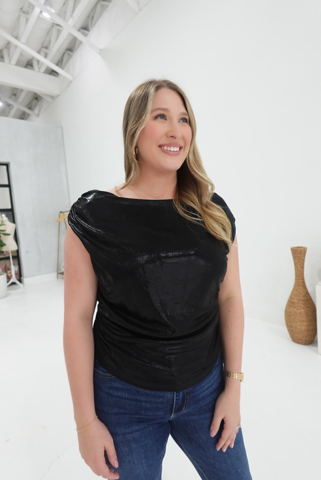 Elevate your style with the Think Your Slick Top, featuring an asymmetrical draped design that adds a modern edge to your look. Its luminous fabric catches the light beautifully, making it perfect for day-to-night wear. Comfortable and effortlessly chic, this top supports your confidence while keeping you fashion-forward.