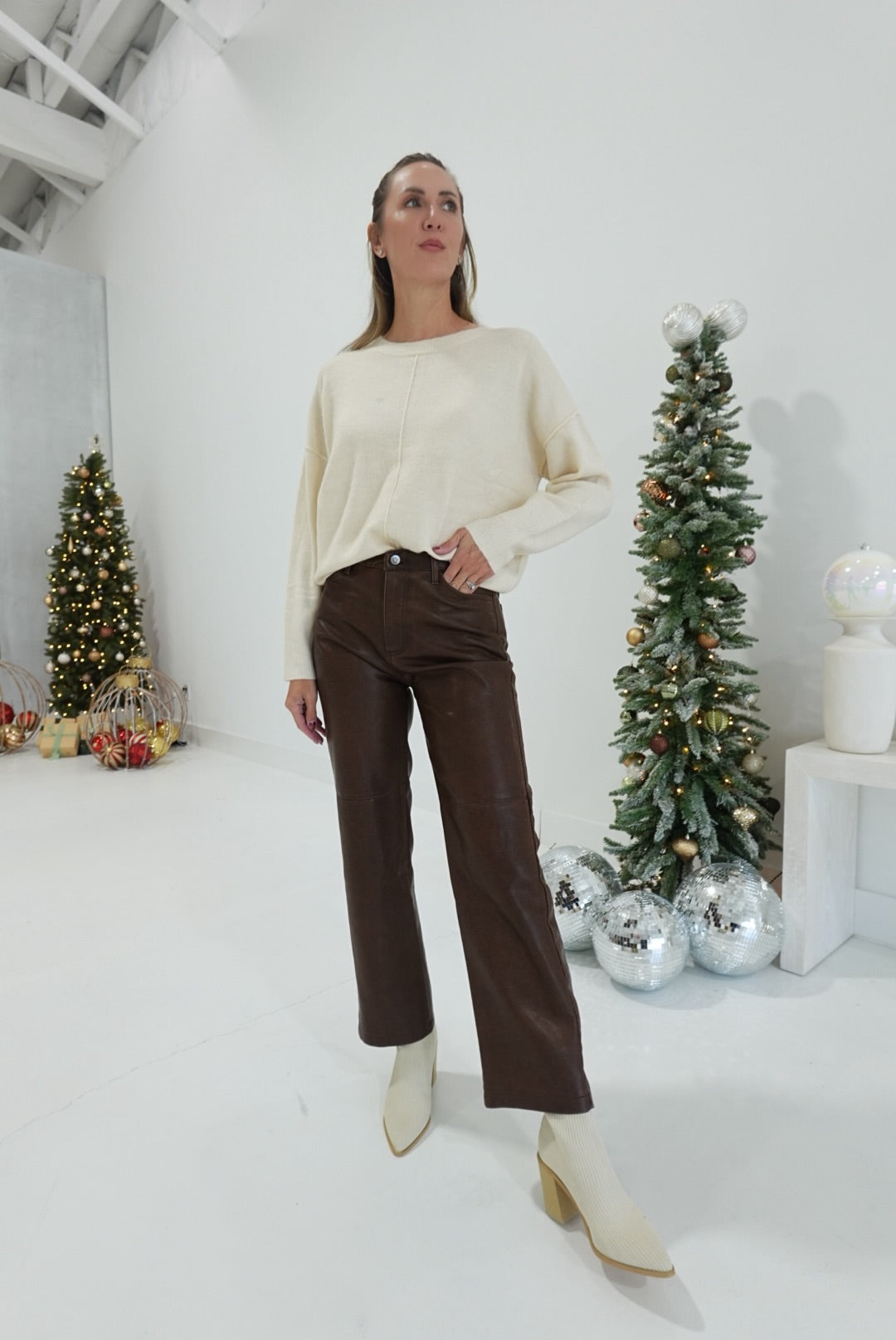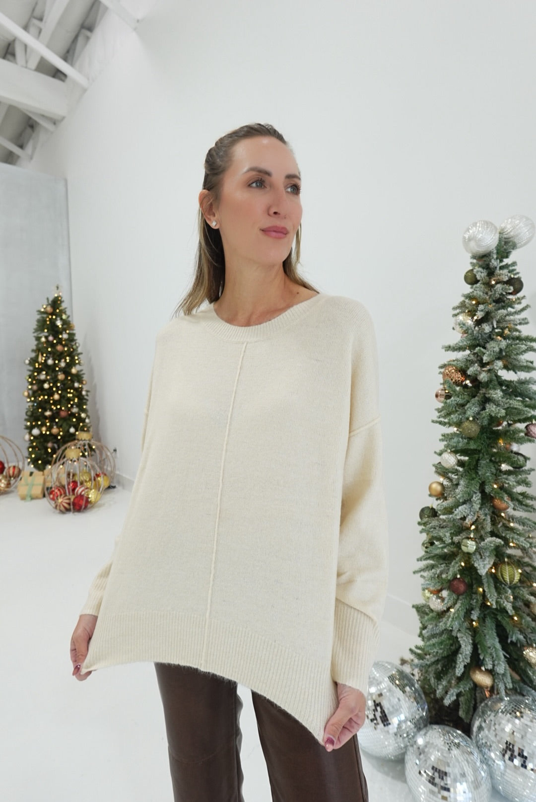 This Love Sweater in Ivory combines cozy comfort with a stylish crew neck and distinctive front seam detail. Crafted for a flattering fit, it offers warmth and softness ideal for everyday wear. Its timeless design makes it easy to layer or wear alone, giving you a reliable go-to piece for any casual occasion. Feel supported and comfortable wherever you go with this versatile sweater.