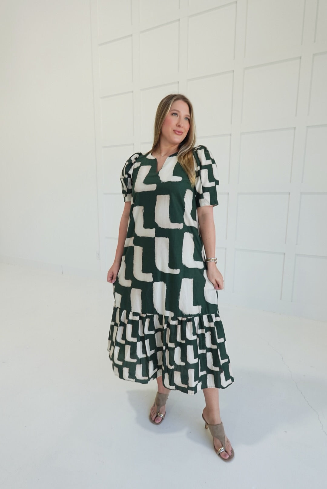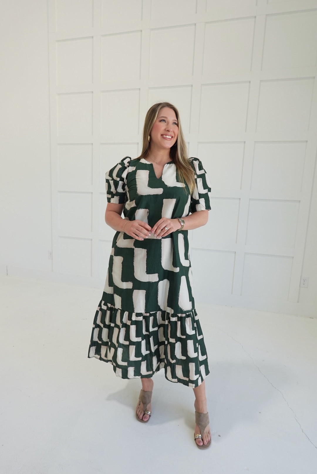 The Tremor Midi Dress features charming short puff sleeves and a flattering midi length, combining classic style with a modern touch. Its lightweight fabric offers comfortable wear for all-day occasions, while the tailored silhouette enhances your natural shape. Perfect for both casual outings and special events, this dress brings effortless elegance to your wardrobe.