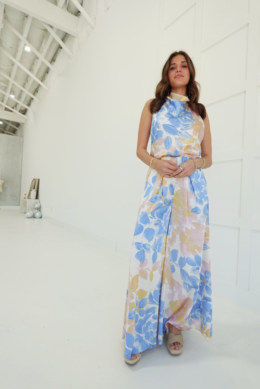 - A-Line Palazzo Pants With Cowl Neck Halter Top